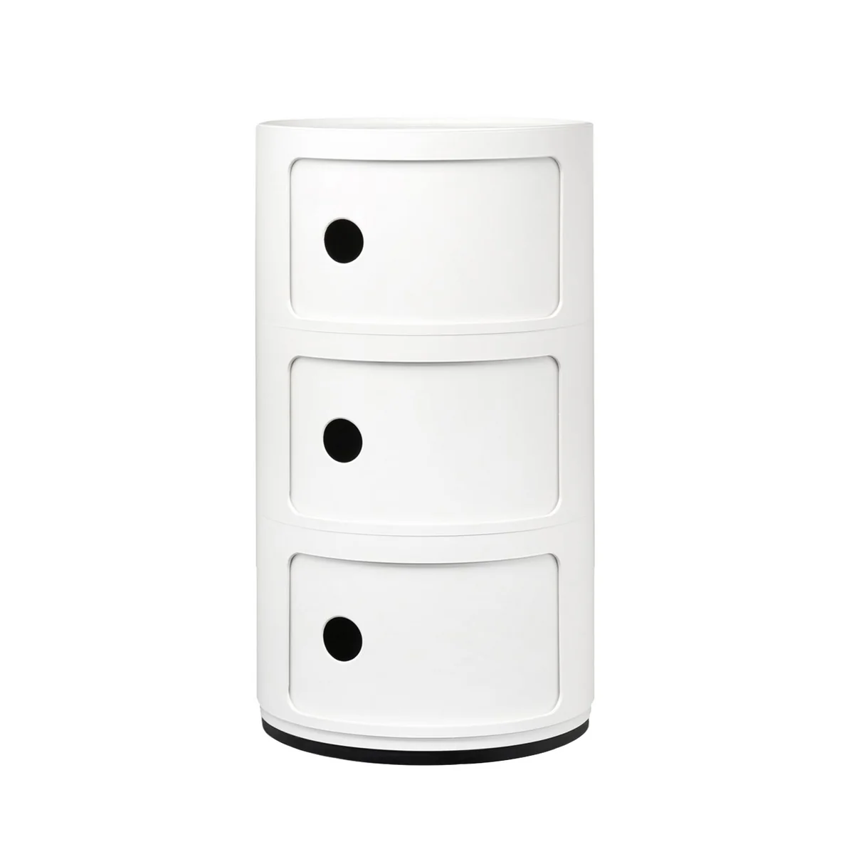 Die Baukastenelemente Componibili wurden 1969 von Anna Castelli Ferrieri entwickelt, um verschiedenste Verwendungsanforderungen zu erfüllen. Die Container von Kartell können in allen Bereichen des Hauses Platz finden: im Bad, im Schlafzimmer, in der Küche und im Wohnzimmer ebenso wie im Kinderzimmer.