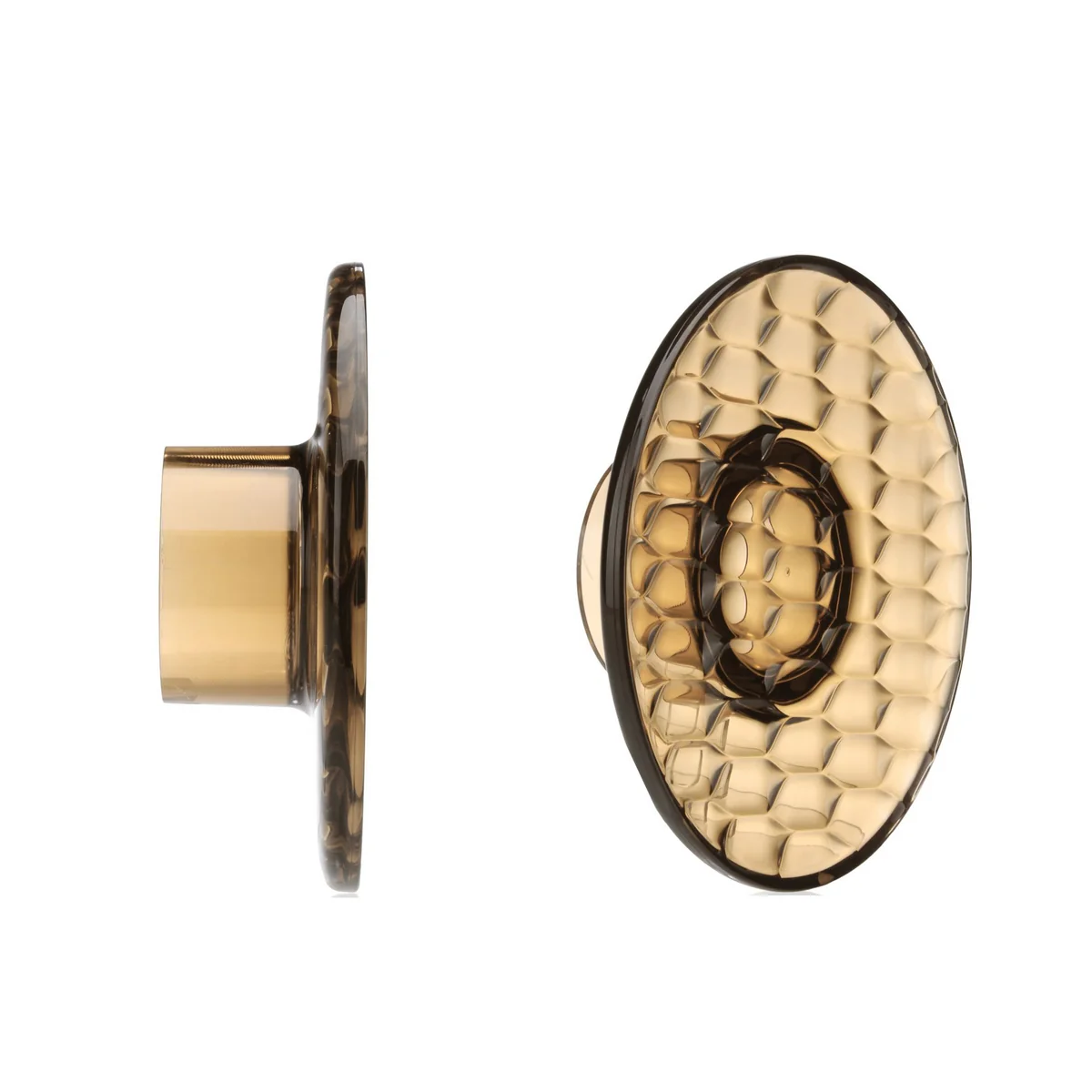 Für die Kleiderhaken Jellies diente die gleichnamige Geschirrkollektion, die Patricia Urquiola 2014 für Kartell entworfen hat, als Vorbild. Das Accessoire ist in verschiedenen Größen erhältlich, jede zeichnet sich durch eine besondere Textur aus. Die Besonderheit liegt in der außergewöhnlichen Gestaltung der Oberfläche, die der Stabilität des Kunststoffs und der geleeartigen Konsistenz, auf die der Name „Jelly“ bereits hinweist, Geltung verleiht.