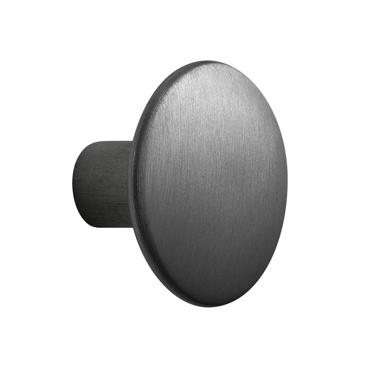 Im Gegensatz zu den ursprünglichen Dots aus Holz werden die Dots Metal aus Aluminium, Messing oder Edelstahl hergestellt. Die Erinnerung an einen Türknauf oder einen Schubladengriff ist der Formgebung der Dots geschuldet.