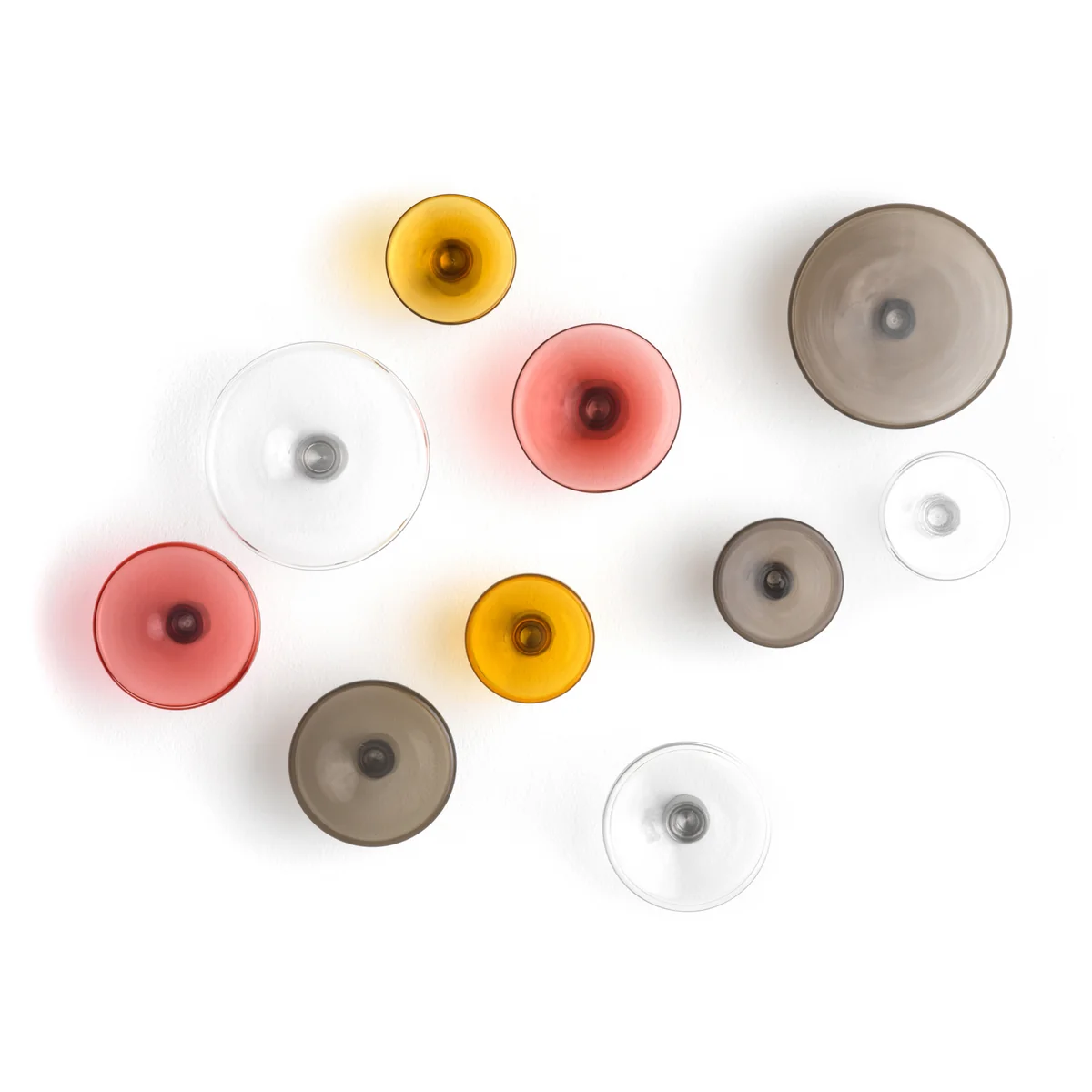 Durch die transparenten als auch die farbigen Glasscheiben entsteht außerdem ein faszinierendes Licht- und Schattenspiel auf der dahinterliegenden Wand. Die Wandhaken sind in verschiedenen Größen verfügbar.