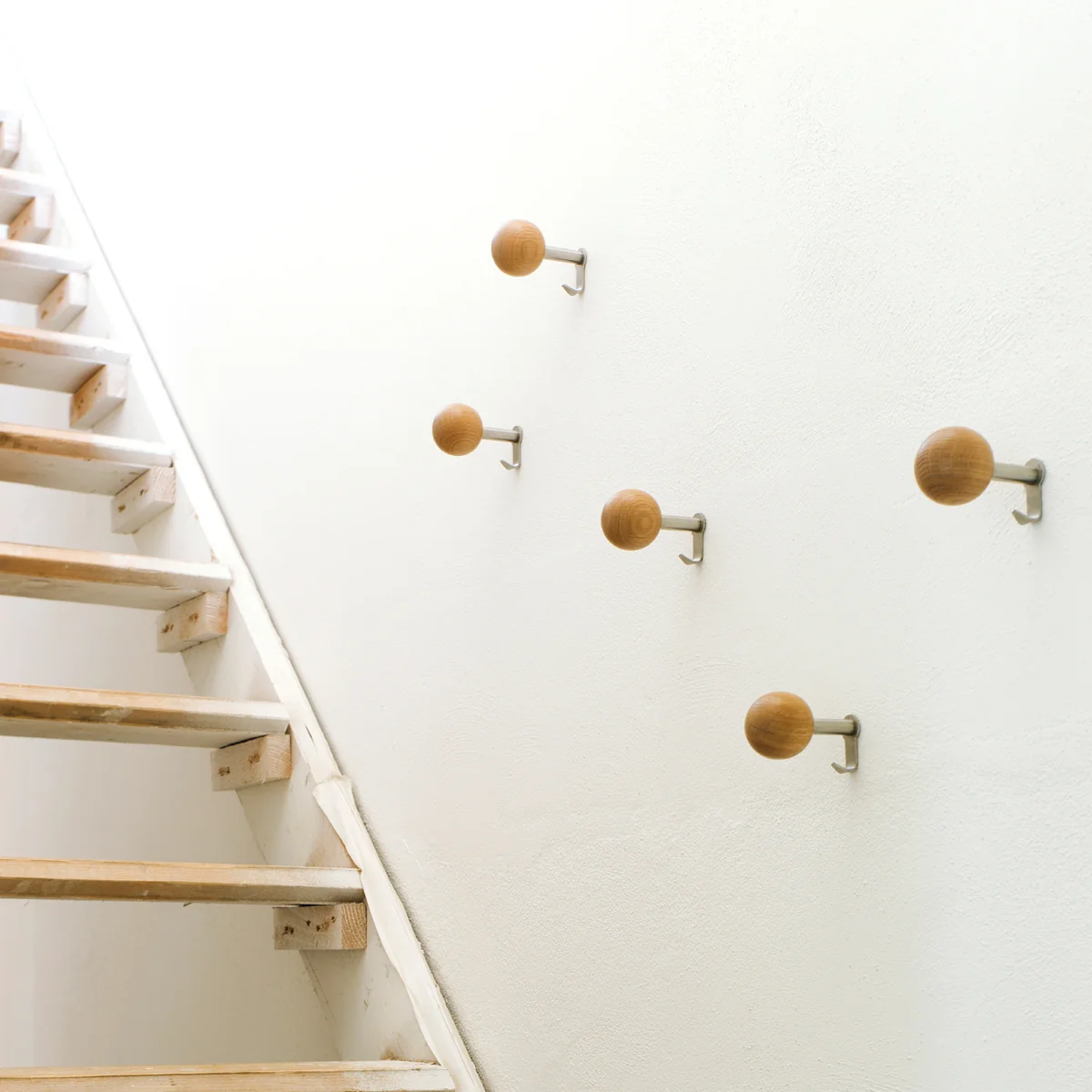 Die Kugel der Dots besteht aus Massivholz, das glänzend lackiert oder natürlich geölt wird. Der vier Zentimeter lange Schaft und die Wandscheibe sind aus gebürstetem Edelstahl gefertigt, das Befestigungsmaterial für die Selbstmontage wird mitgeliefert.