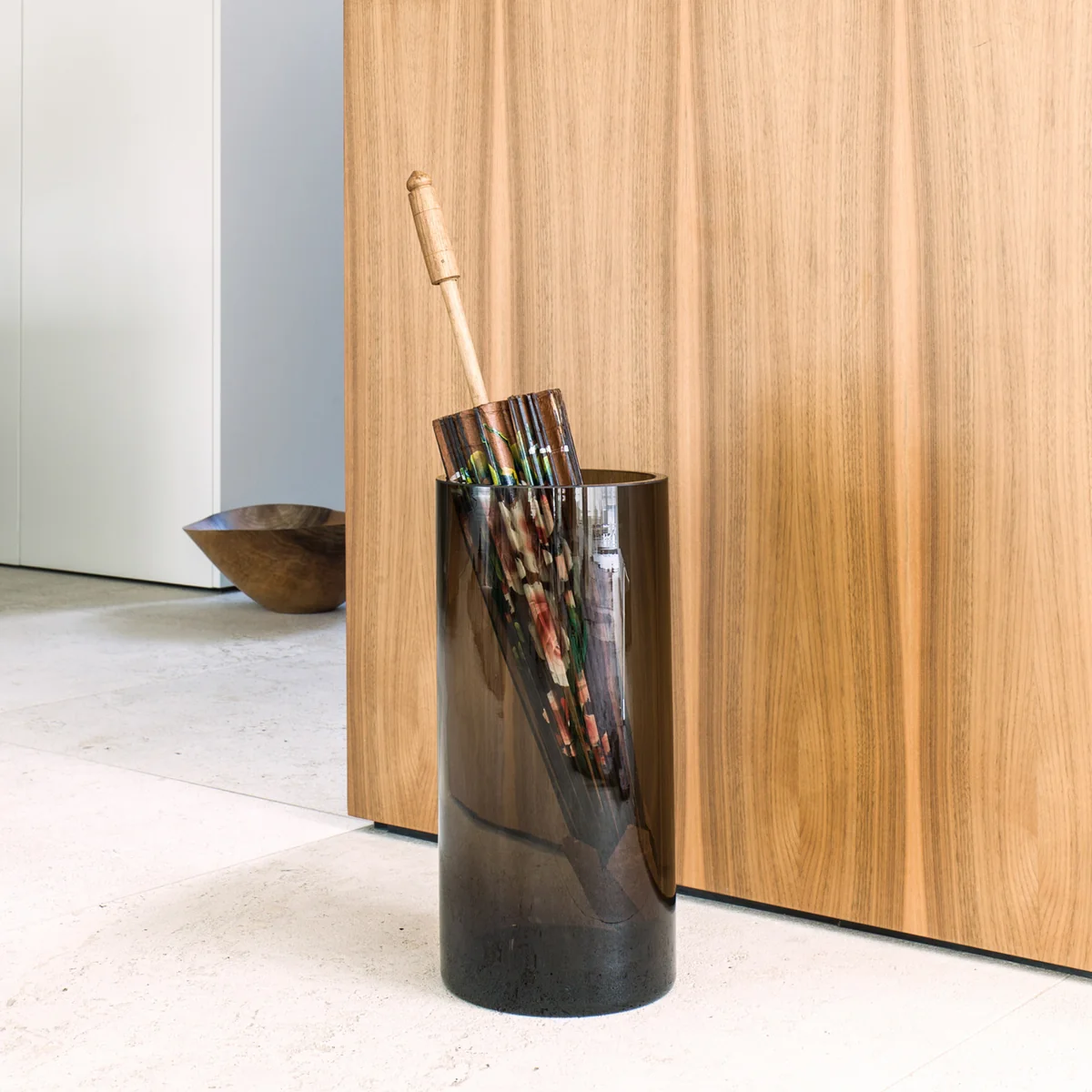 Der Schirmständer 0510 von Schönbuch ist in klarem Glas oder Rauchglas erhältlich.
