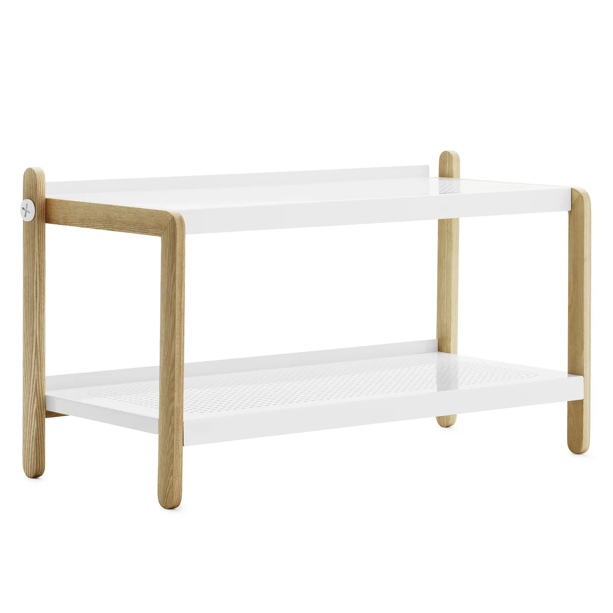 Normann Copenhagen stellt das Sko Schuhregal aus Eschenholz und Stahl her. Keine überflüssigen Bauteile stören den klaren Eindruck, den das von Simon Legald gestaltete Designerstück hinterlässt. Einzig die grafisch gestalteten Schrauben an der Seite des oberen Regalbodens fügen dem reduzierten Auftritt des Sko eine Prise gestalterische Leichtigkeit hinzu.