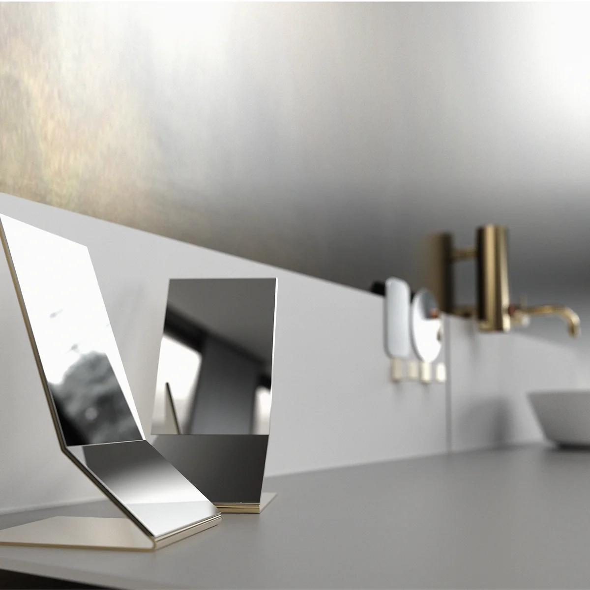 Der Aluminium-Tischspiegel ist in verschiedenen Farben erhältlich.
