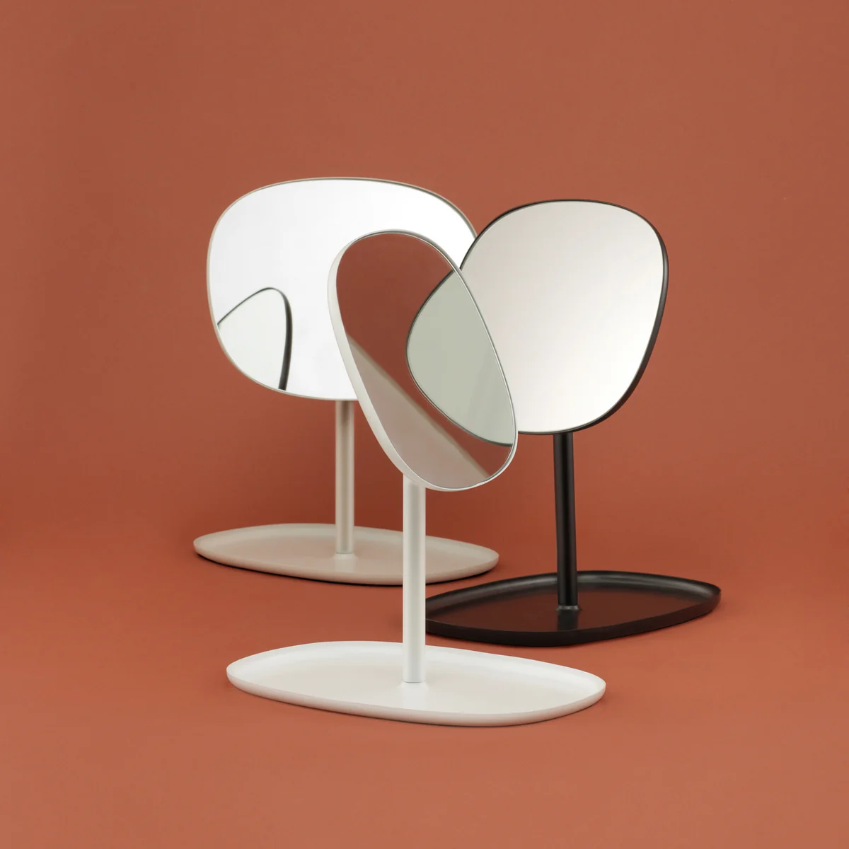 Javier Moreno hat für Normann Copenhagen einen schlichten Tischspiegel mit mehreren Funktionen entworfen.