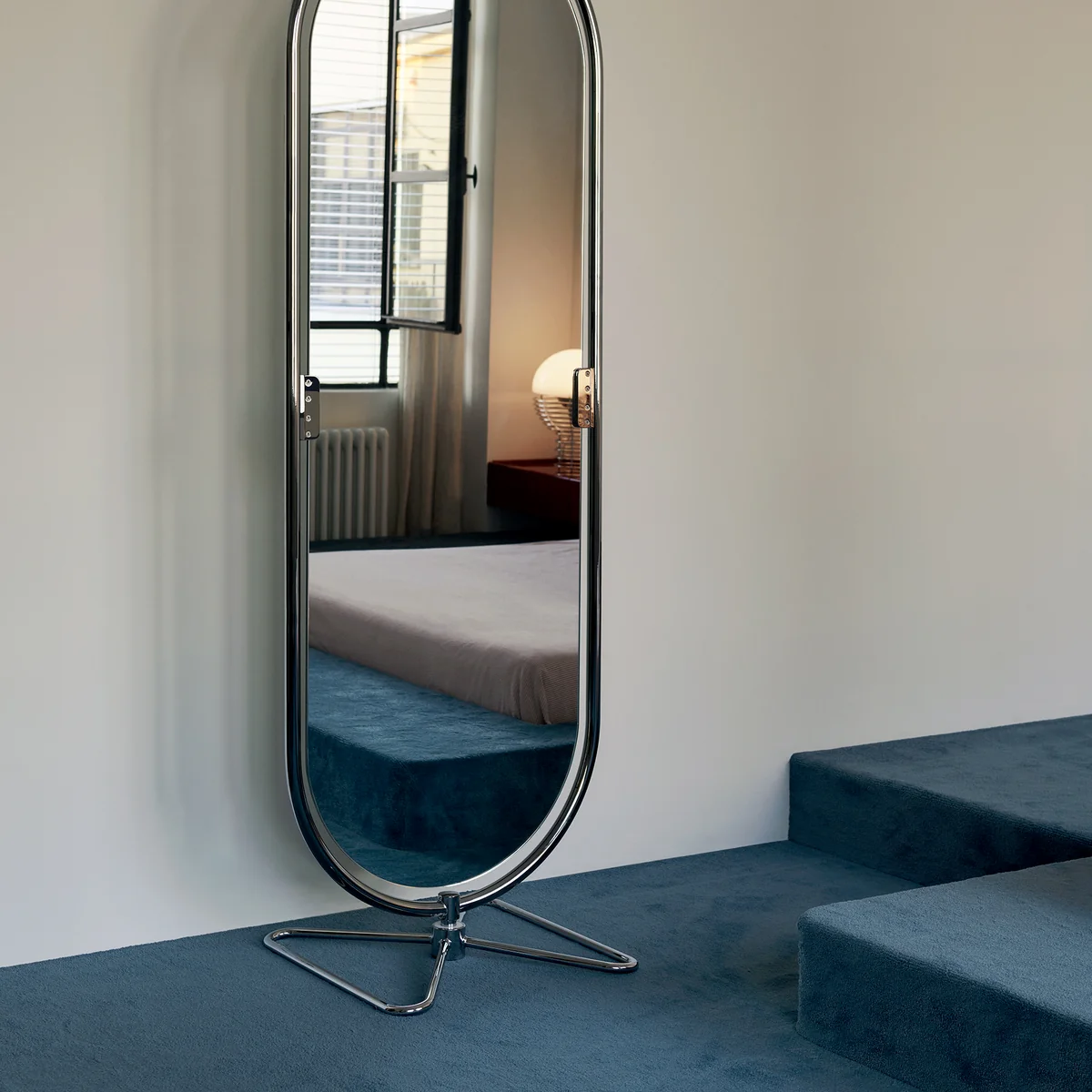 Der Fuß in Schmetterlingsform verschafft dem Spiegel zudem eine leicht verspielte Note und ermöglicht zugleich das beliebig freie Aufstellen überall im Raum. Aufgrund des edlen Designa fügt sich der System 1-2-3 Spiegel bestens in jedes Ambiente ein kann sowohl im Flur, als auch im Schlafzimmer hervorragend in Szene gesetzt werden.