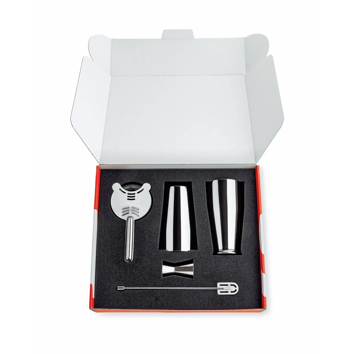 Das Boston Cocktail Set von Alessi ist ein professionelles Bar-Set bestehend aus einem amerikanischen „Boston“-Shaker, einem Barsieb, einem Stirrer und einem Messbecher. Ob Caipirinha, Cosmopolitan oder Margarita – einer ausgelassenen Cocktail-Party steht mit dem Boston Set nichts im Wege! Entworfen wurde es von Ettore Sottsass und Alberto Gozzi.