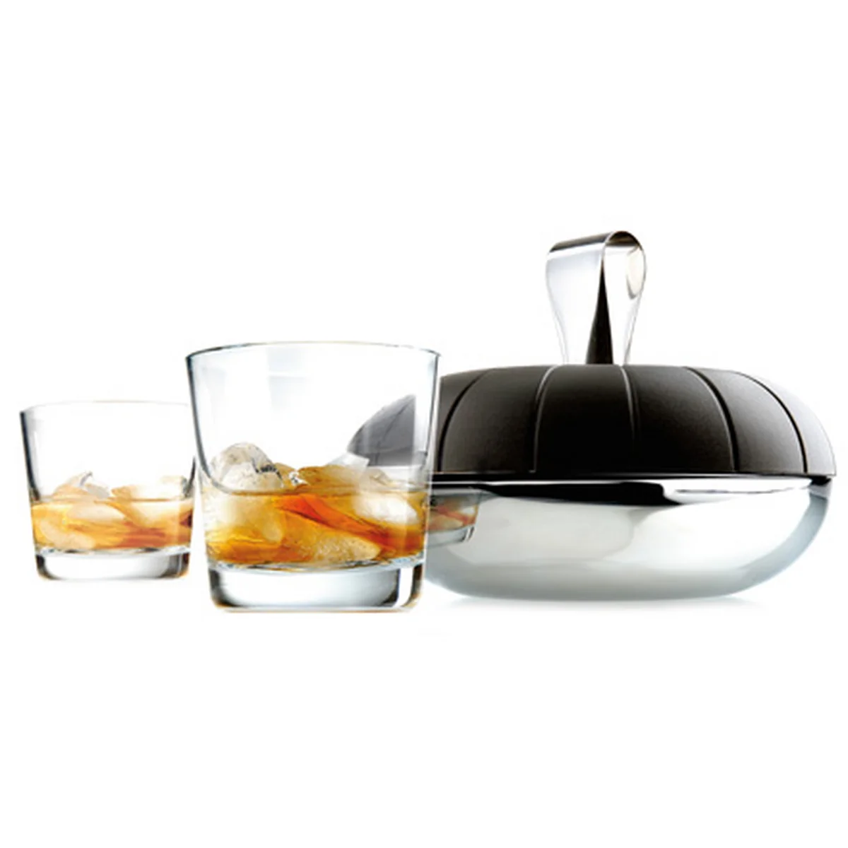 Indem Sie Wasser in die Formen im Deckel geben und dann in den Gefrierschrank stellen, können Sie Eiswürfel leicht selber herstellen. Die doppelwandige Edelstahlschale hält die Eiswürfel einige Zeit kühl. In dem Henkel des Deckels verbirgt sich eine Eiszange mit dem Sie die Eiswürfel ganz einfach in die Gläser geben können. Dem Genuss eisgekühlter Getränke steht nun nichts mehr im Wege.