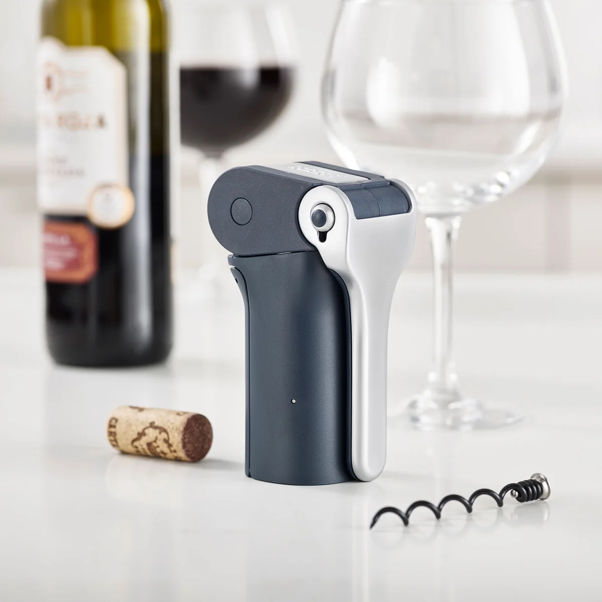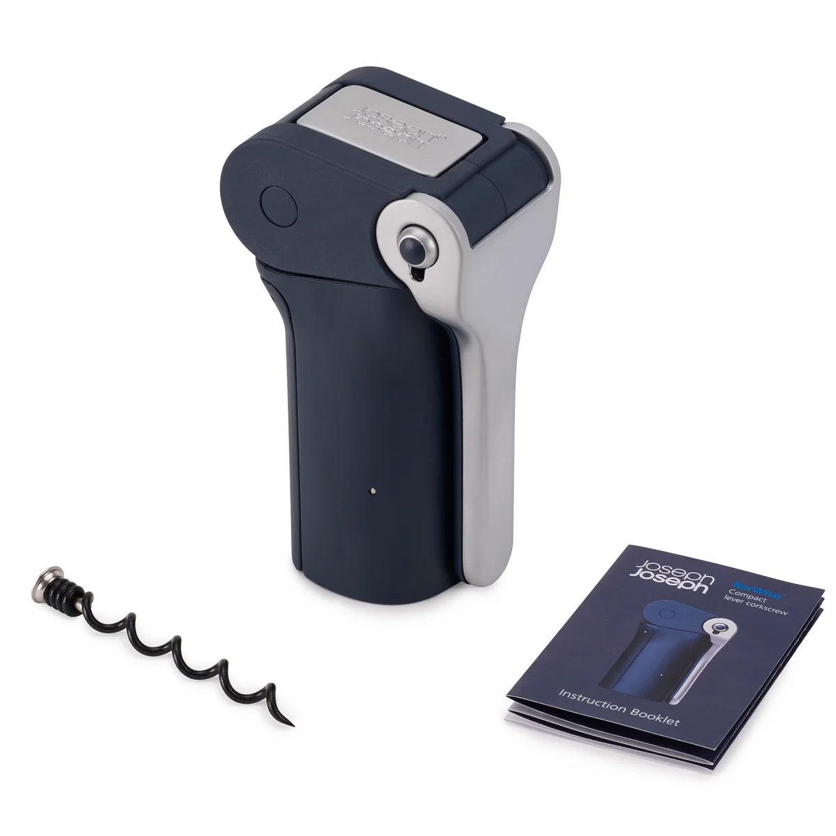 Der kompakte Hebelkorkenzieher von Joseph Joseph aus der BarWise Serie kombiniert die geballte Kraft eines großen Hebel-Korkenziehers in einem intelligenten, faltbaren Design. Während andere Korkenzieher eher groß und unhandlich in der Verwendung und beim Aufbewahren sind überzeugt der BarWise Hebelkorkenzieher durch seine Benutzerfreundlichkeit. Der Korkenzieher entfernt den Korken mit nur einer Hebelbewegung. Außerdem verfügt er über zwei integrierte Folienschneider sowie ein antihaftbeschichtetes Gewinde, das leicht in jeden Korken gleitet.