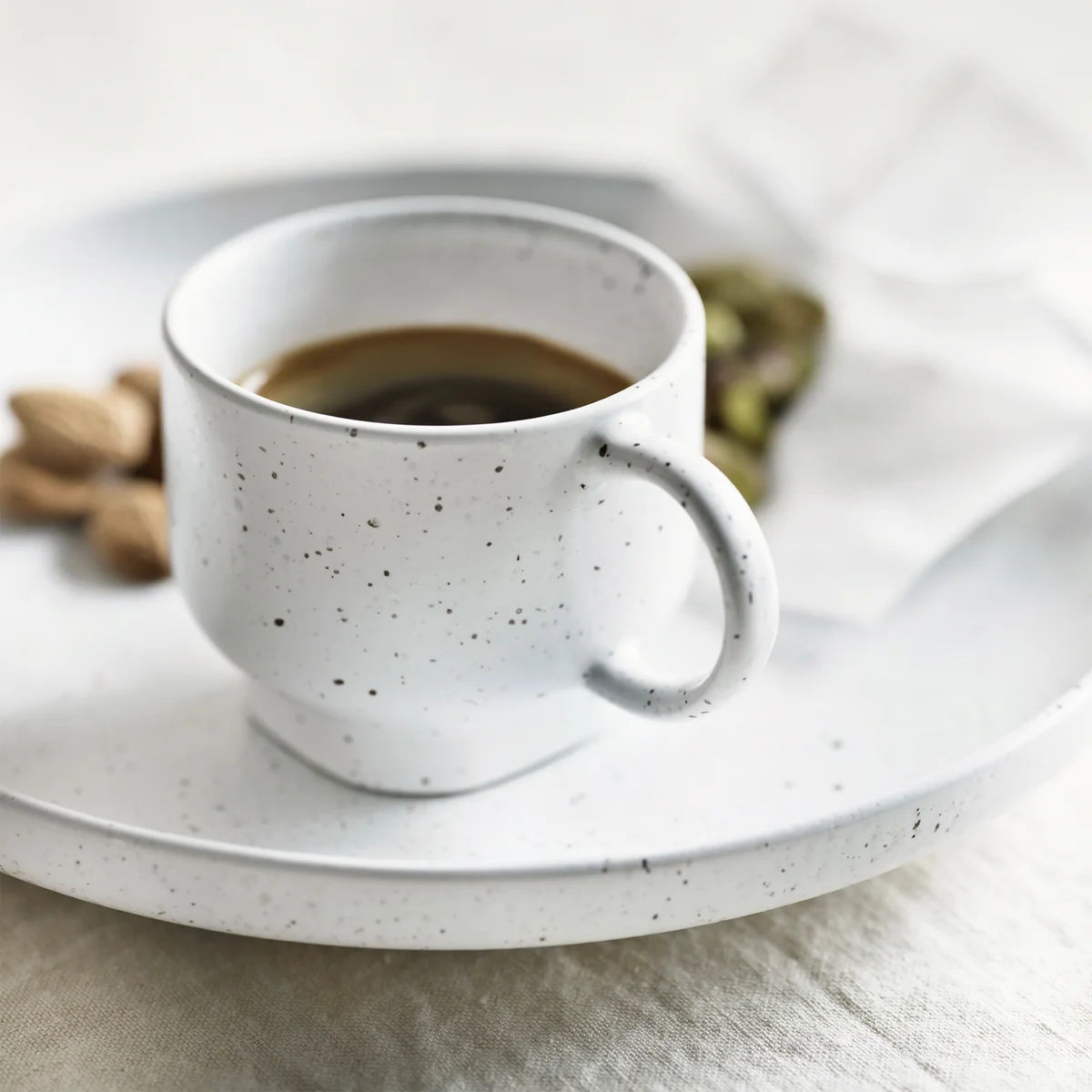 Die Forma Espressotassen von Ferriani Sbolgi für Bolia ist Teil der gleichnamigen Steingutkollektion mit exquisit gefertigtem Geschirr, Kerzenhaltern, Vasen und Blumentöpfen, die alle einen einzigartigen, handwerklichen Charakter haben. Inspiriert vom minimalistischen japanischen Design und Japans reicher Designtradition, kombiniert jedes Stück eine quadratische Basis mit einer abgerundeten Oberseite, um ein harmonisches Gleichgewicht zu erreichen. Die aus langlebiger Keramik handgefertigten Stücke besitzen einen zeitlosen Charme, der über flüchtige Trends hinausgeht.