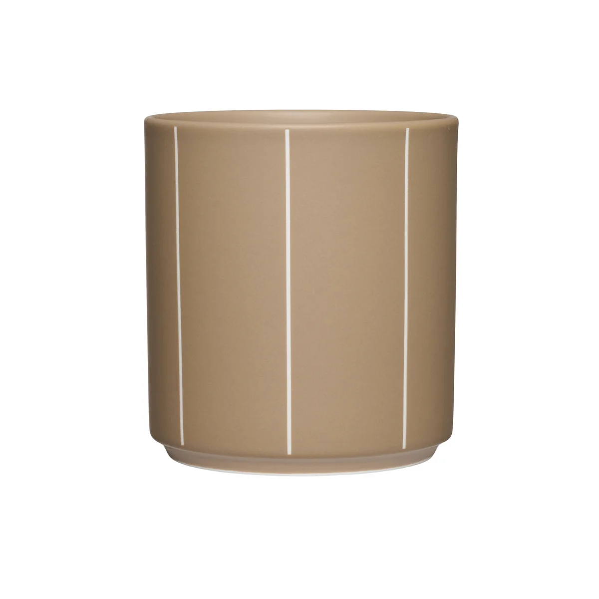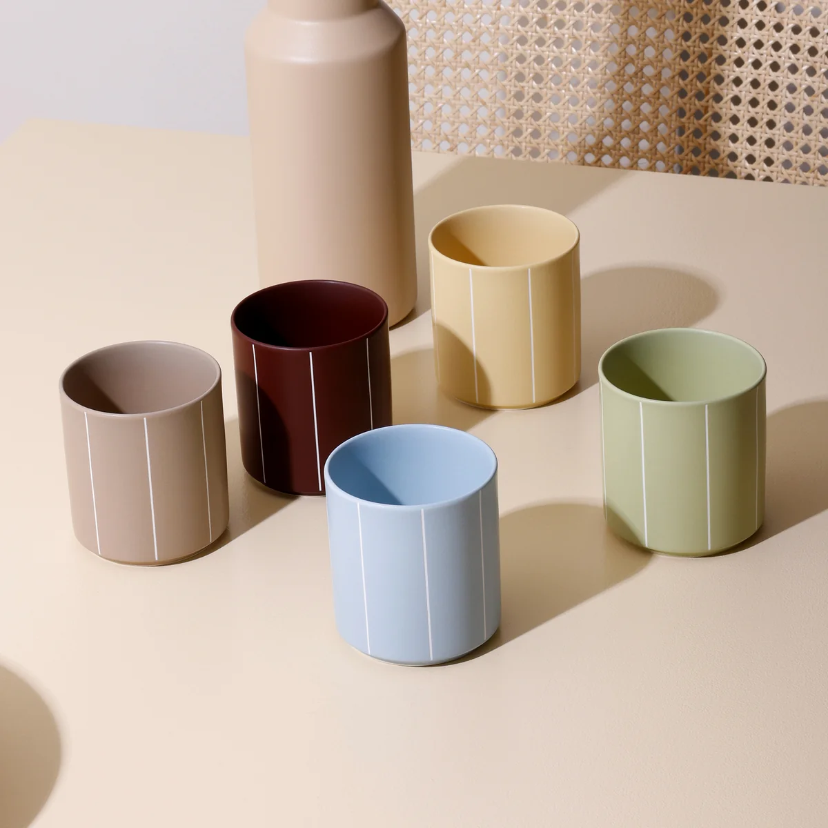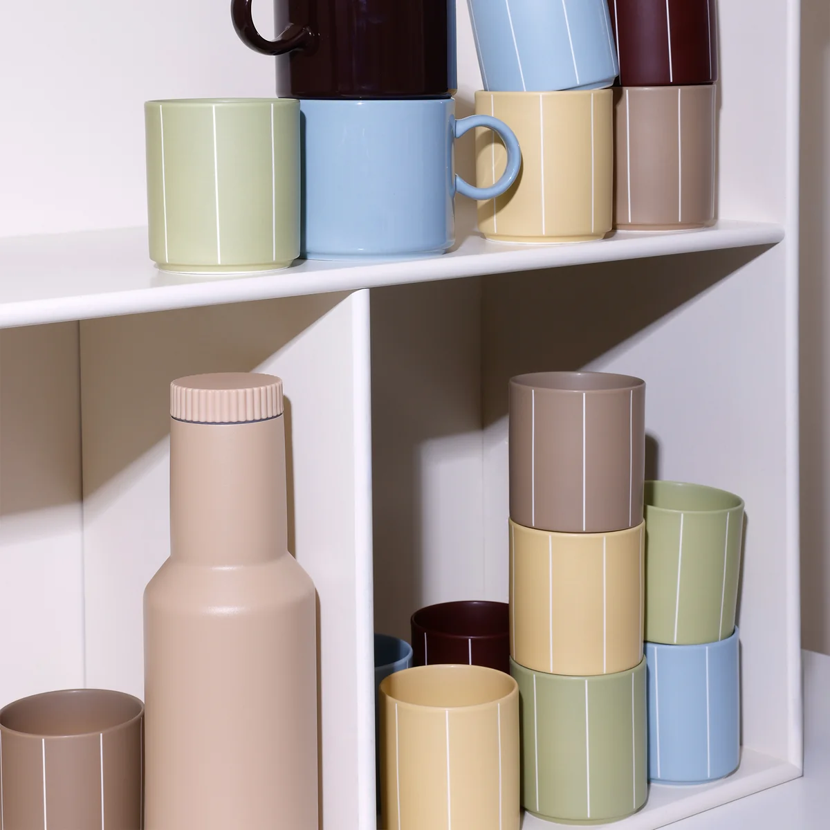 Die matten Glasuren verleihen dem Becher eine moderne, ruhige Ausstrahlung und unterstreichen den raffinierten Charakter des Designs. Ihre glatte, samtige Oberfläche fühlt sich angenehm an und bringt die sorgfältig abgestimmten, ungiftigen und lebensmittelechten Farbtöne besonders schön zur Geltung. So vereint der Nordic Pyjamas Becher zeitlose Schönheit mit zeitgemäßem Design und hoher Funktionalität.