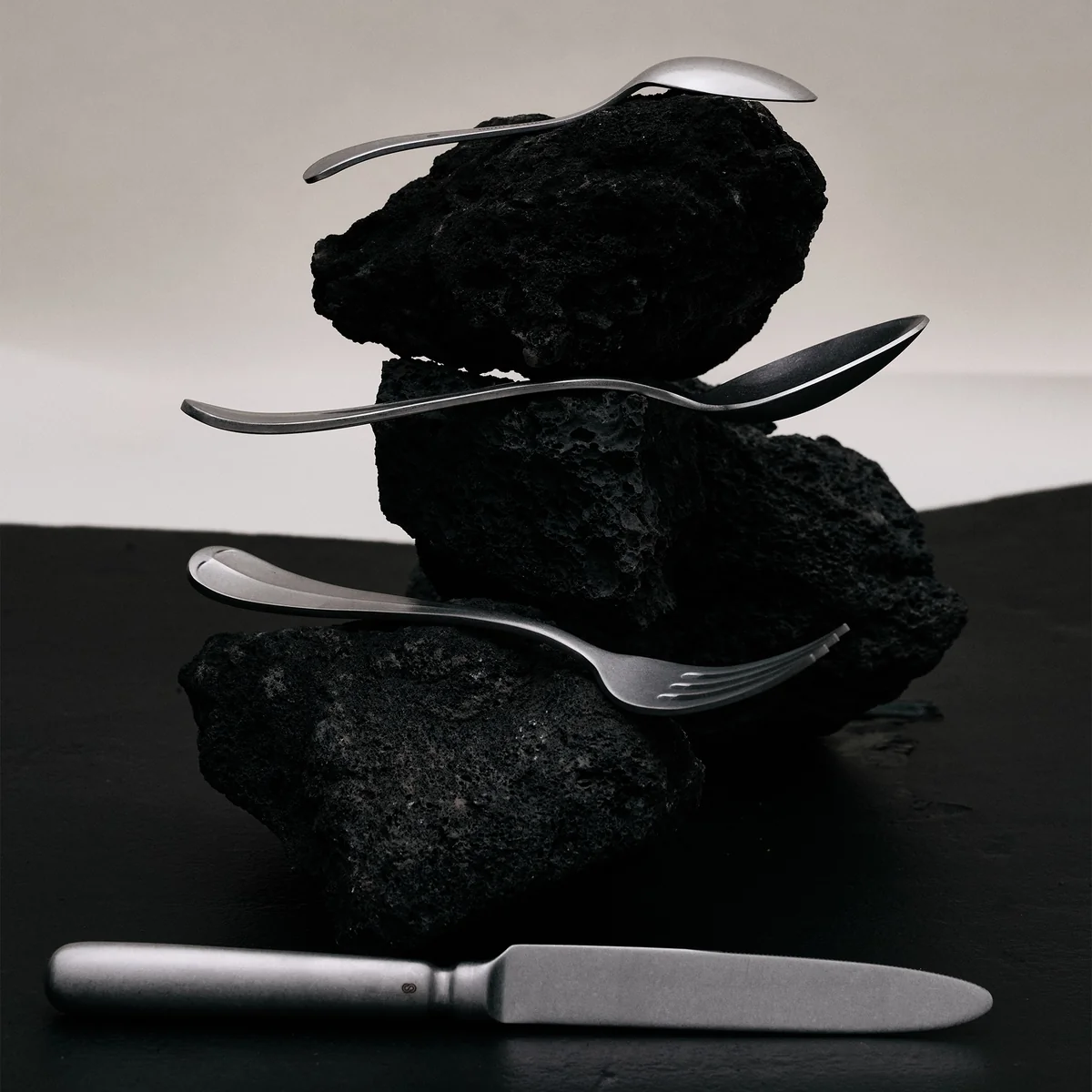 Das Besteckset überzeugt durch eine klare, kraftvolle Formensprache und eine angenehme Haptik, es verkörpert eine zeitlose Eleganz, die perfekt zur modernen Tischkultur passt.