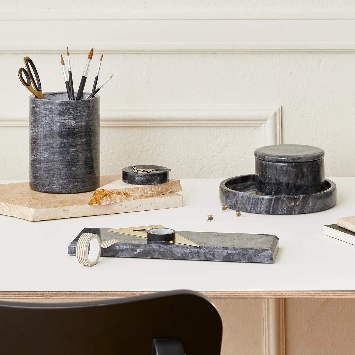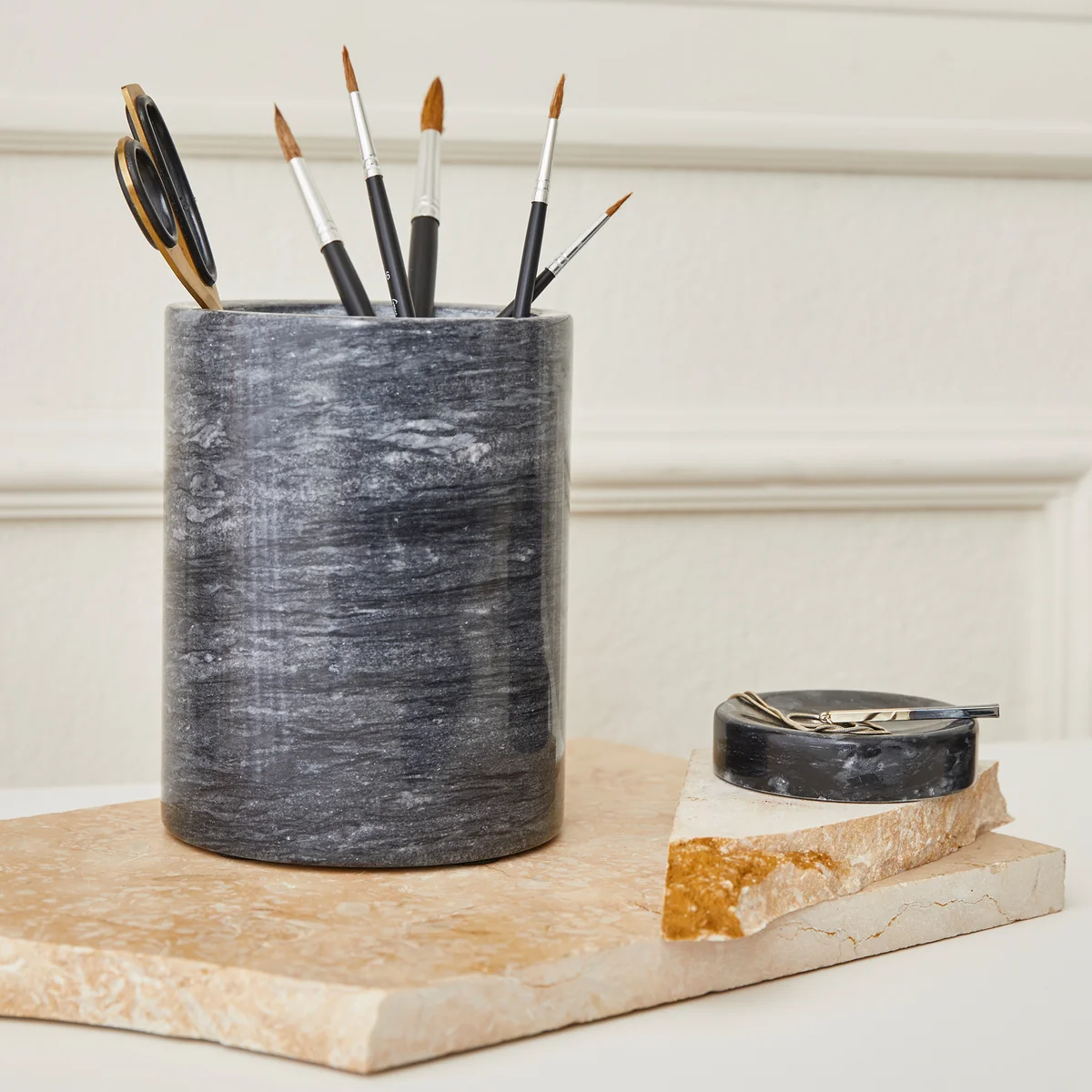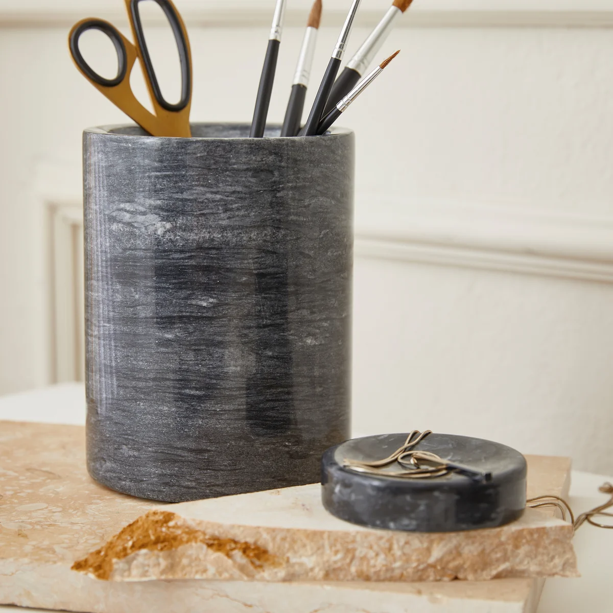 Der Marmor Utensilienbehälter von yunic ist ein extrem vielseitiges Accessoire in der Wohnung: Egal, ob als Stiftehalter im Büro, für das Kochbesteck in der Küche, oder im Atelier für kreative Zwecke - zum Beispiel als Pinselhalter, der Utensilienbehälter ist zeitlos und setzt Akzente.