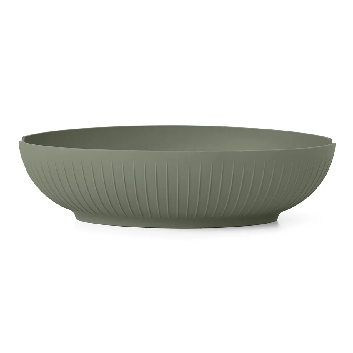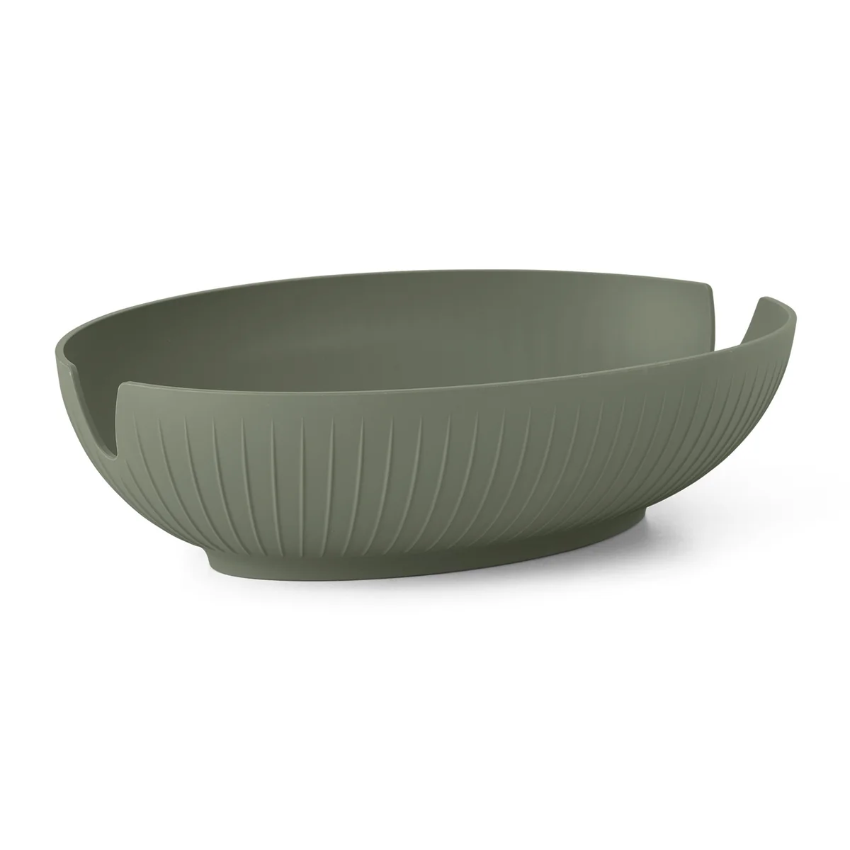 Der Hammershøi Brotkorb von Kähler Design ist sowohl perfekt für den Alltagsfrühstückstisch, als auch für Grillpartys oder die gemeinsame Tafel. Der Brotkorb trägt die serientypischen Rillen, die es zu einem eleganten Stück formen, das zugleich überaus funktional ist. Mit den Einschnitten an beiden Enden, wirkt der Brotkorb nicht nur formschön, sondern bietet auch eine Ablage für das korpulente Brotmesser. Sowohl Brötchen, als auch ganzes Steinofen-Brot kann in dem Brotkorb serviert werden.