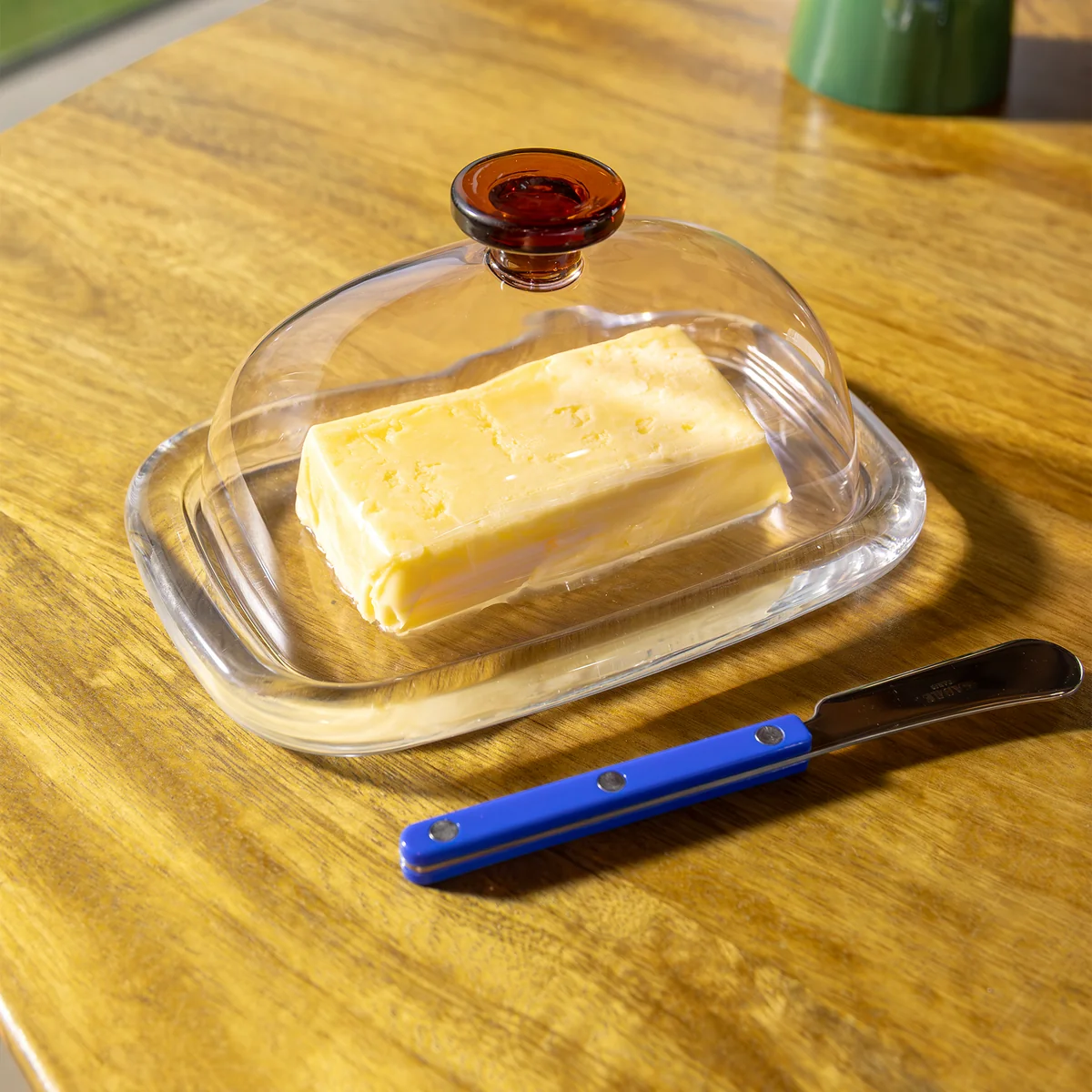 - Borosilikatglas‑Deckel hält Butter frisch und sichtbar
