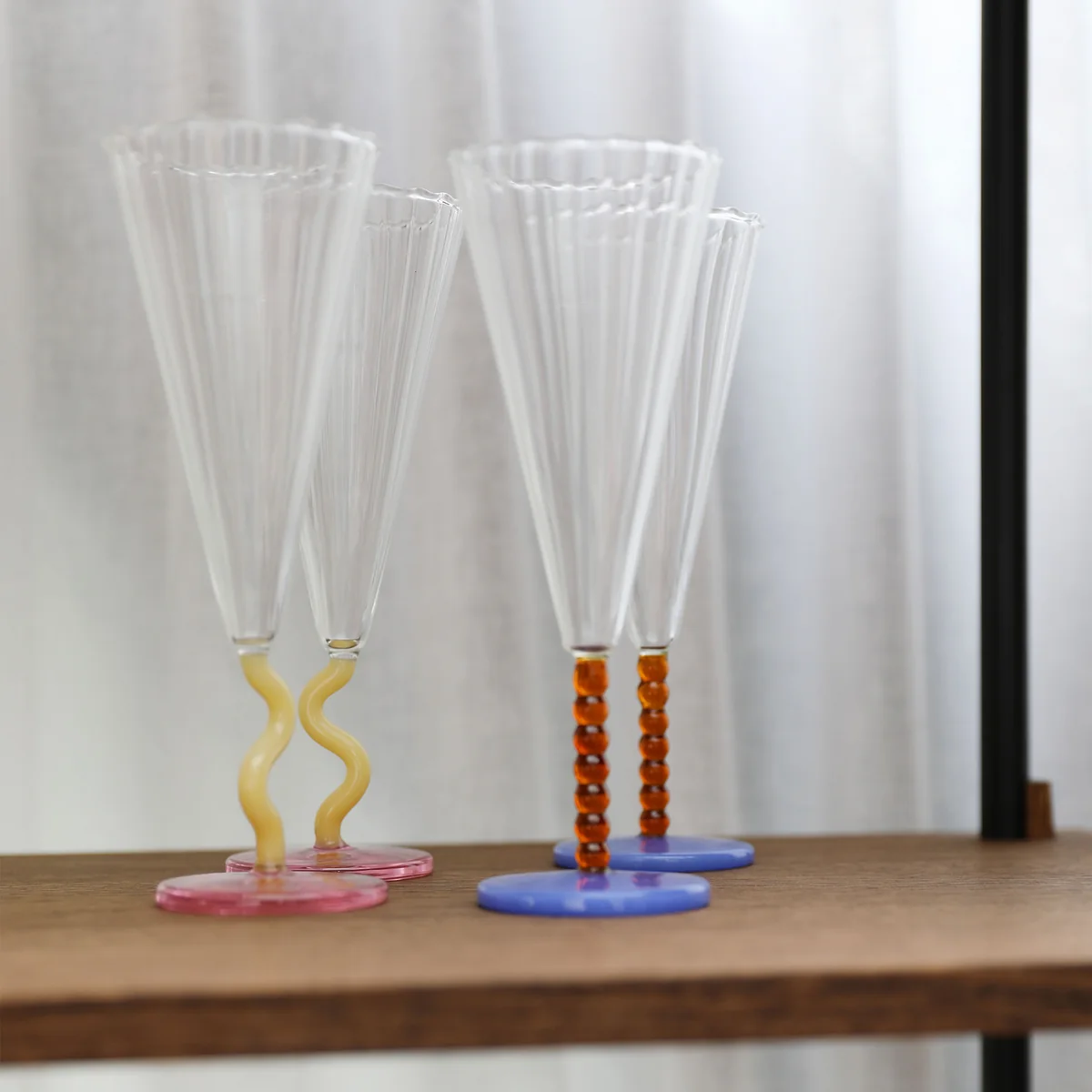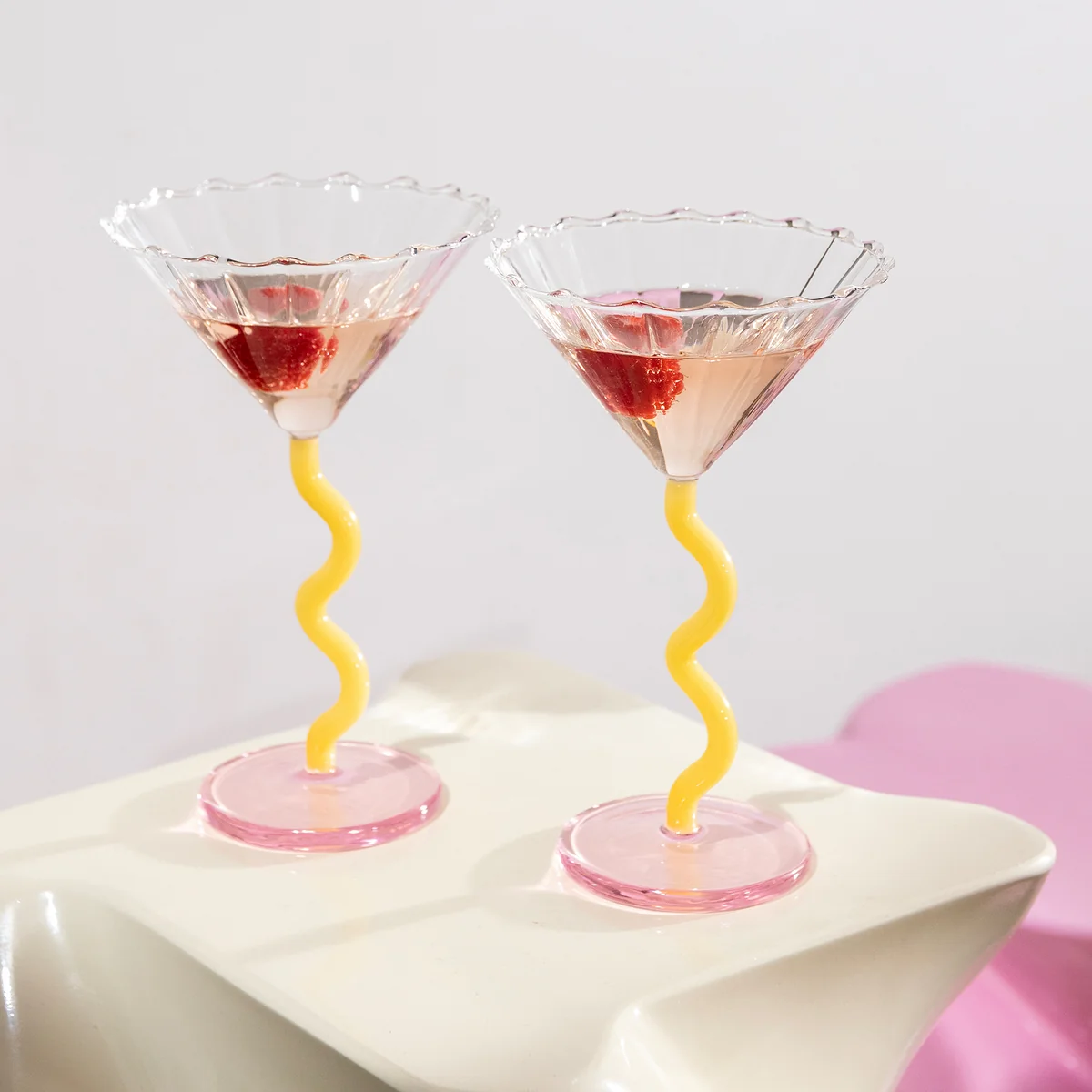 Das Set aus zwei Coupe Curve Cocktailgläsern überzeugt mit seiner geschwungenen Form und farbigem Glas, das jedem Anlass eine besondere Note verleiht. Die feine Kombination aus zarter Form und sanften Farbakzenten macht sie zu einem einzigartigen Blickfang. Perfekt für Champagner, Cocktails oder Wasser – ebenso ideal für Desserts wie Eiscreme oder Früchte.
