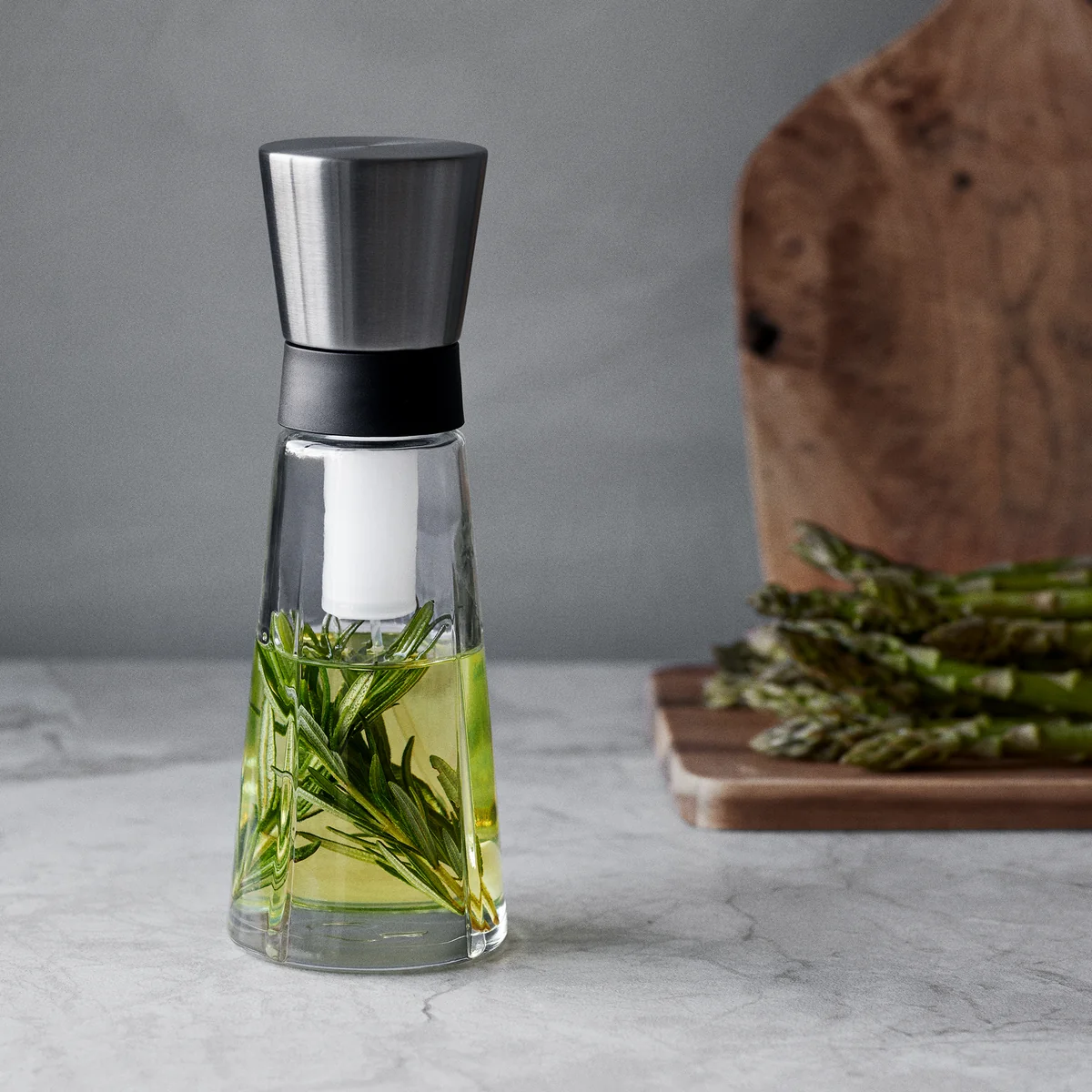 Gefertigt aus hochwertigem Glas mit der charakteristischen Grand Cru-Rillenstruktur und einem Sprühkopf aus Edelstahl, vereint die Flasche Ästhetik mit langlebiger Qualität. Sie lässt sich mühelos mit weiteren Produkten der Grand Cru-Serie kombinieren und bringt skandinavische Eleganz auf den Esstisch.