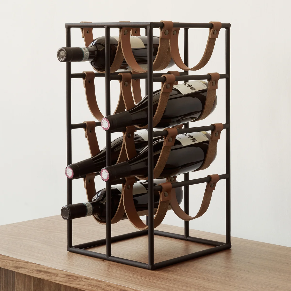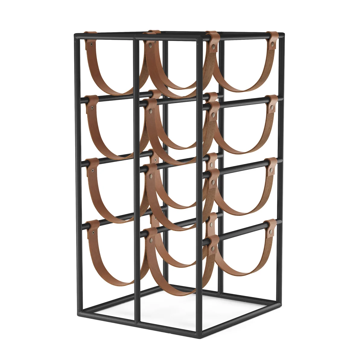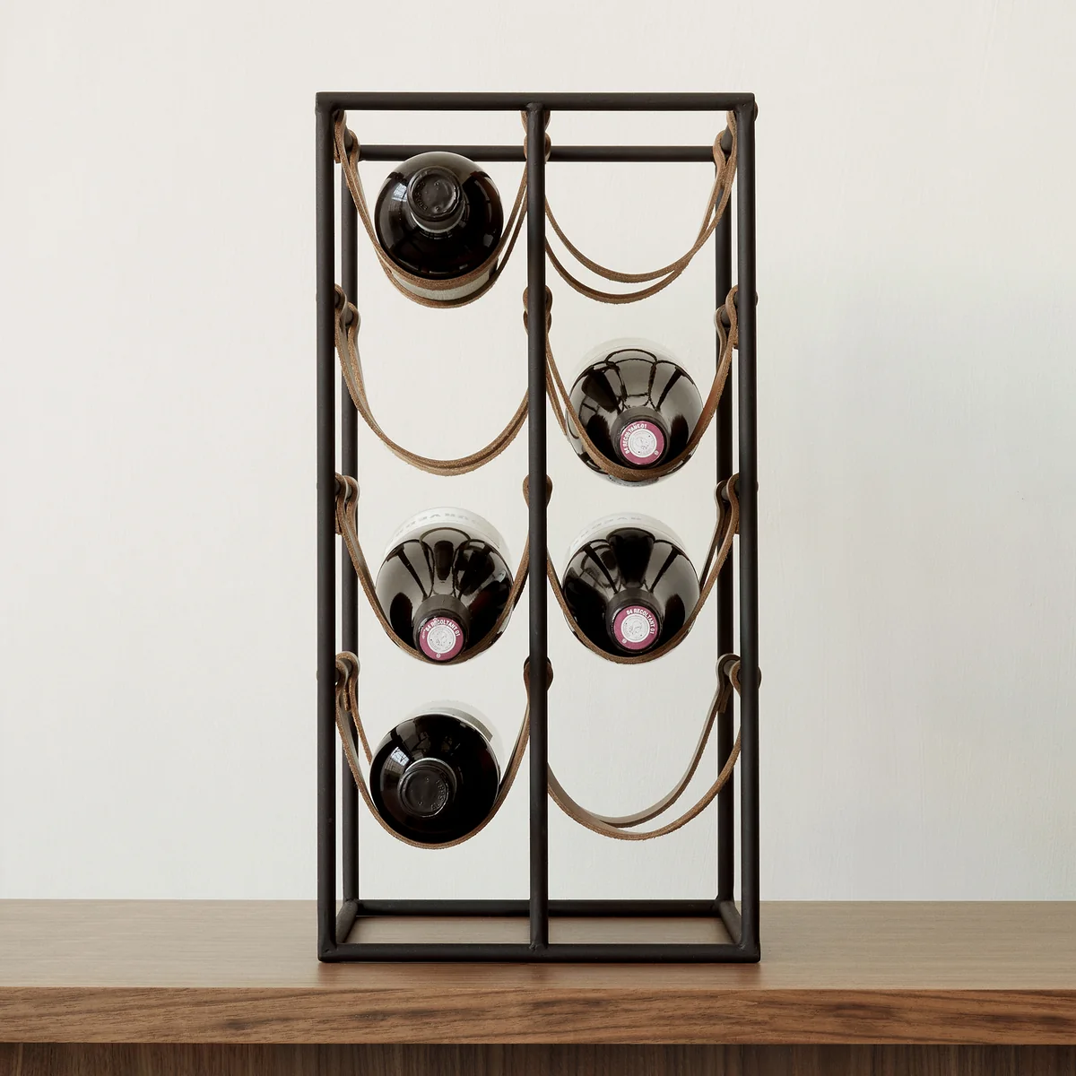 Elegantes Weinregal mit Flaschenhalter aus Leder