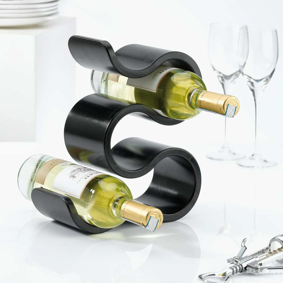 Das Boa Flaschenregal von Koziol umgarnt mit jeder Menge dekorativem Pfiff bis zu fünf Flaschen. Innerhalb seiner eleganten und gleichzeitig stabilen Schwünge setzt es Wein, Wasser oder Likör überaus dynamisch in Szene.