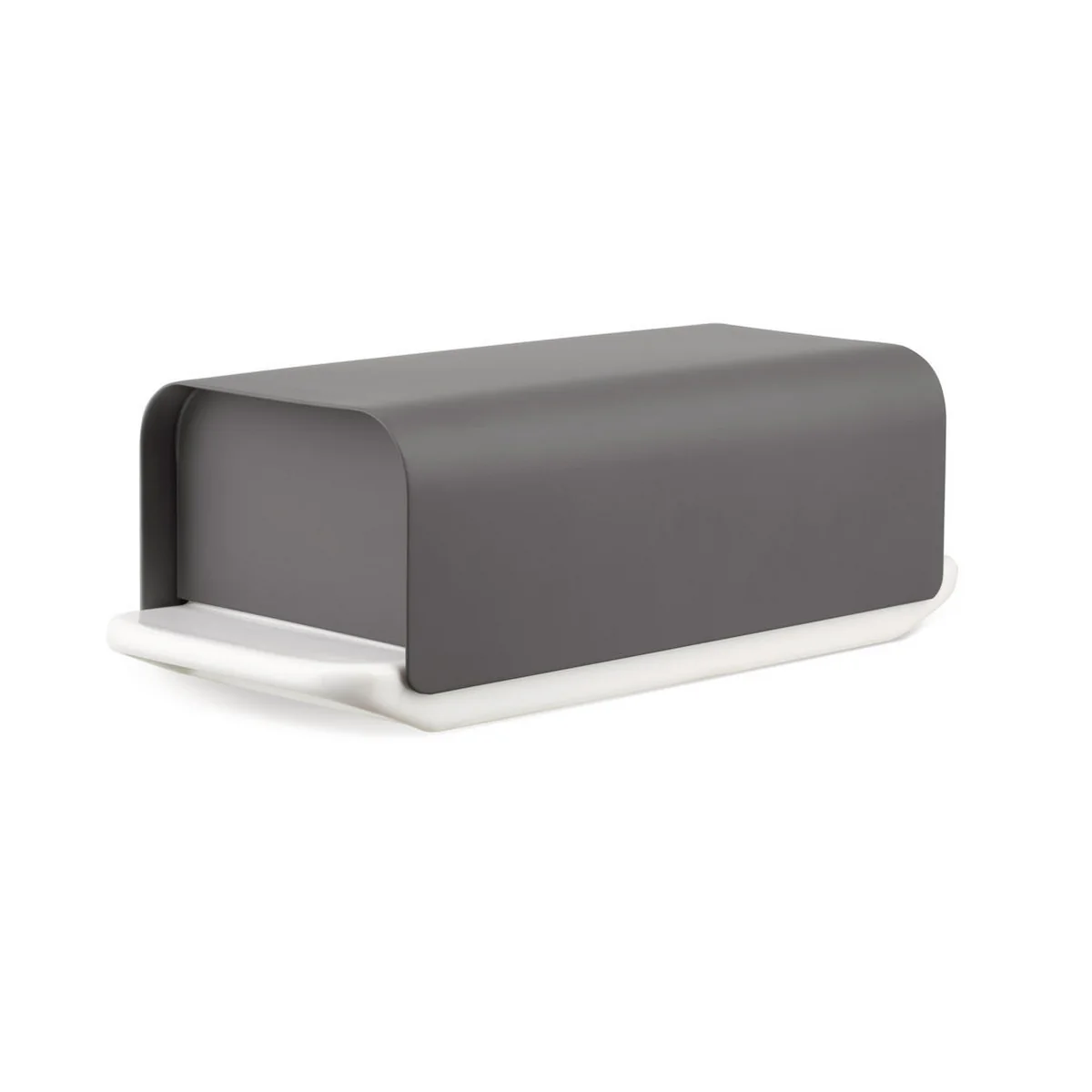Das Butterdosen Set besteht aus einem kleinen Porzellanteller, der von einer Stahlglocke aus Epoxidharz überwölbt wird. Aufgrund des geradlinigen Designs, der feinen Oberfläche und den ästhetischen Farben, kann die Mattina Butterdose problemlos mit anderen Tischgegenständen kombiniert werden.