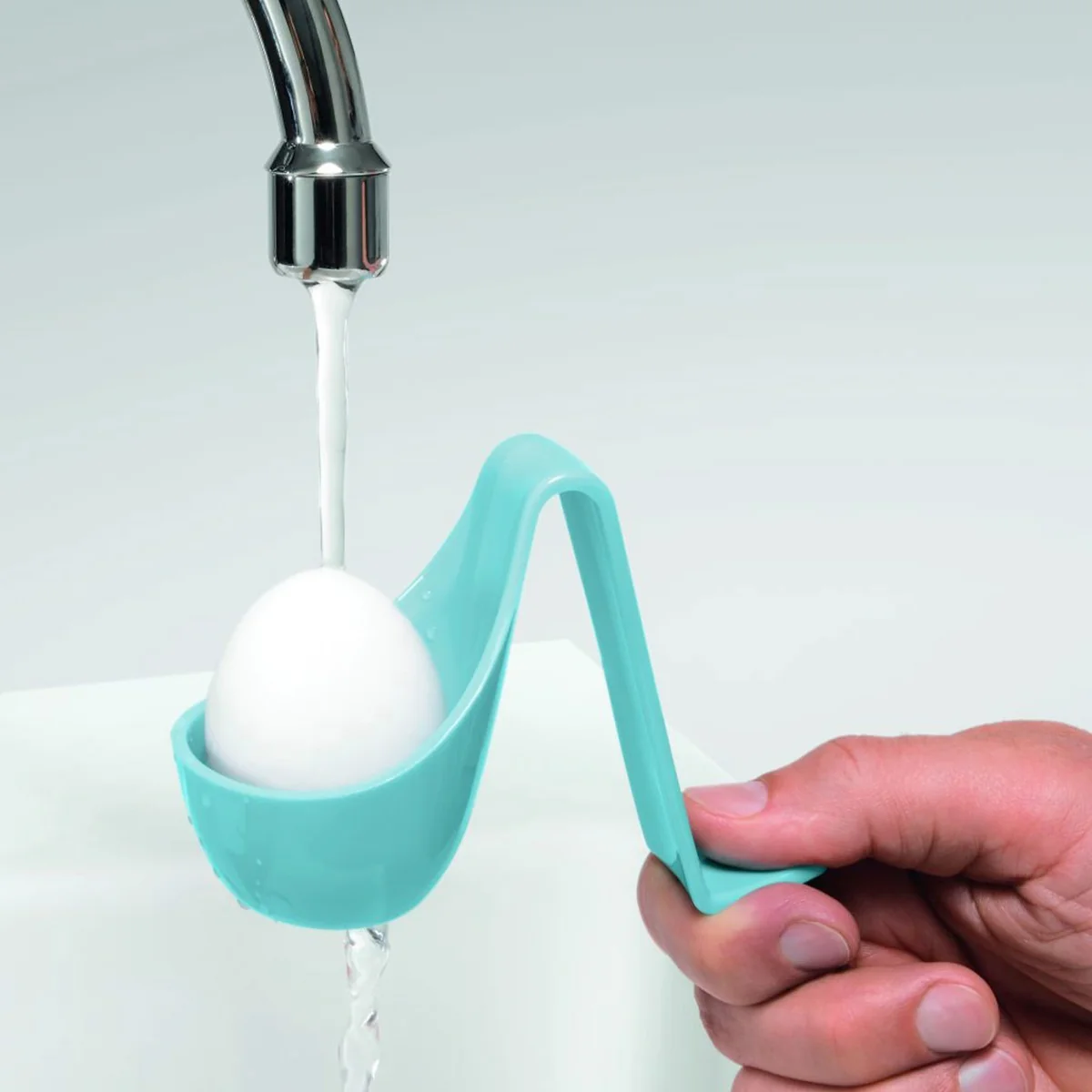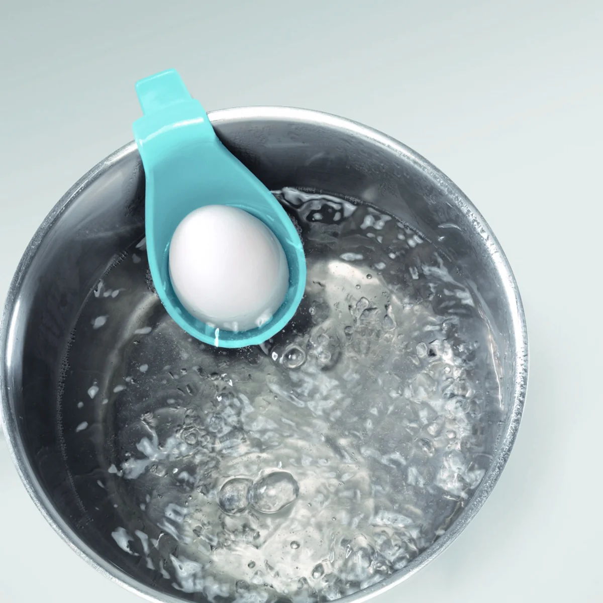 3. Das fertig gekochte Ei kann berührungslos und ohne Verbrennungen sicher vom Kochtopf über ein eventuelles Kaltwasserbad zum Tisch transportiert werden, wobei das Design auch gleichzeitig besonders standfest ist.