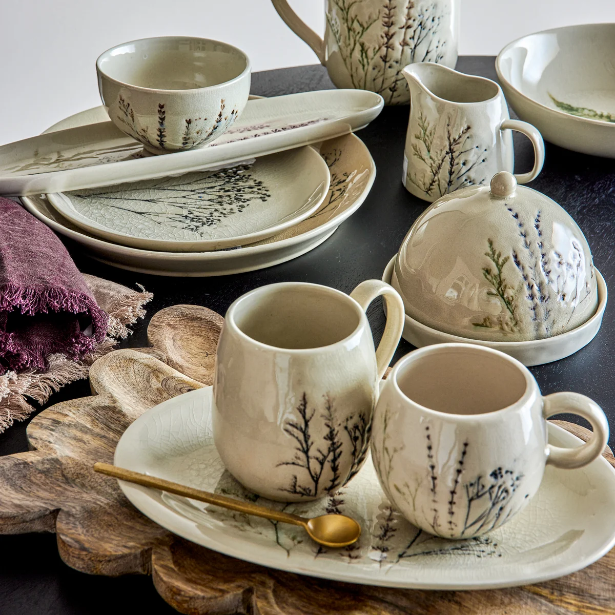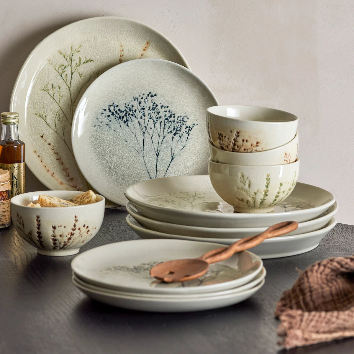 Jedes Stück in diesem Geschirrset ist ein Unikat, da es von Hand gefertigt wurde. Das Steingut verleiht dem Geschirrset nicht nur eine robuste Haltbarkeit, sondern auch einen rustikalen Charme, der die Mahlzeiten in ein Erlebnis verwandelt.