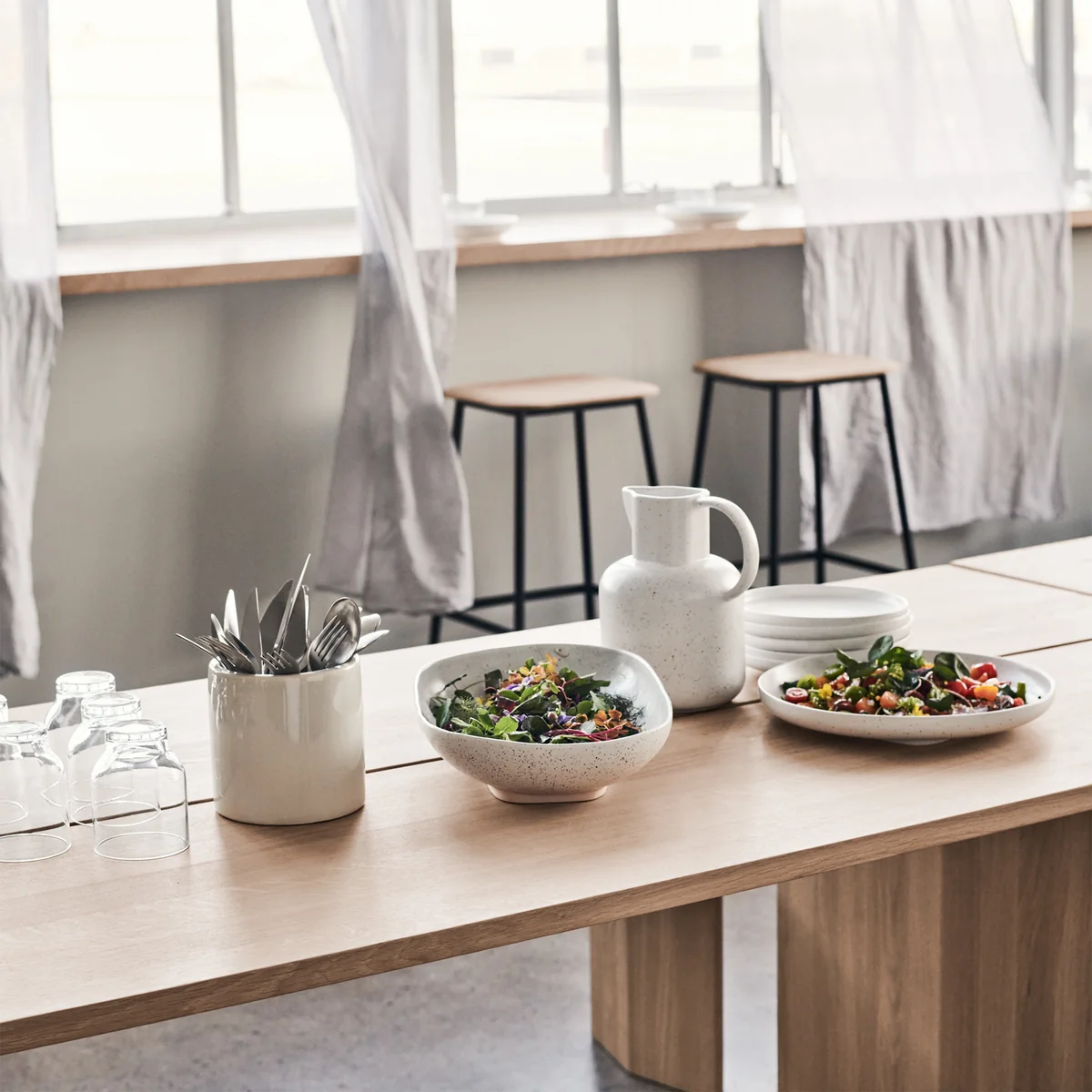 Die Forma Servierplatte von Ferriani Sbolgi für Bolia ist Teil der gleichnamigen Steingutkollektion mit exquisit gefertigtem Geschirr, Kerzenhaltern, Vasen und Blumentöpfen, die alle einen einzigartigen, handwerklichen Charakter haben. Inspiriert vom minimalistischen japanischen Design und Japans reicher Designtradition, kombiniert jedes Stück eine quadratische Basis mit einer abgerundeten Oberseite, um ein harmonisches Gleichgewicht zu erreichen. Die aus langlebiger Keramik handgefertigten Stücke besitzen einen zeitlosen Charme, der über flüchtige Trends hinausgeht.