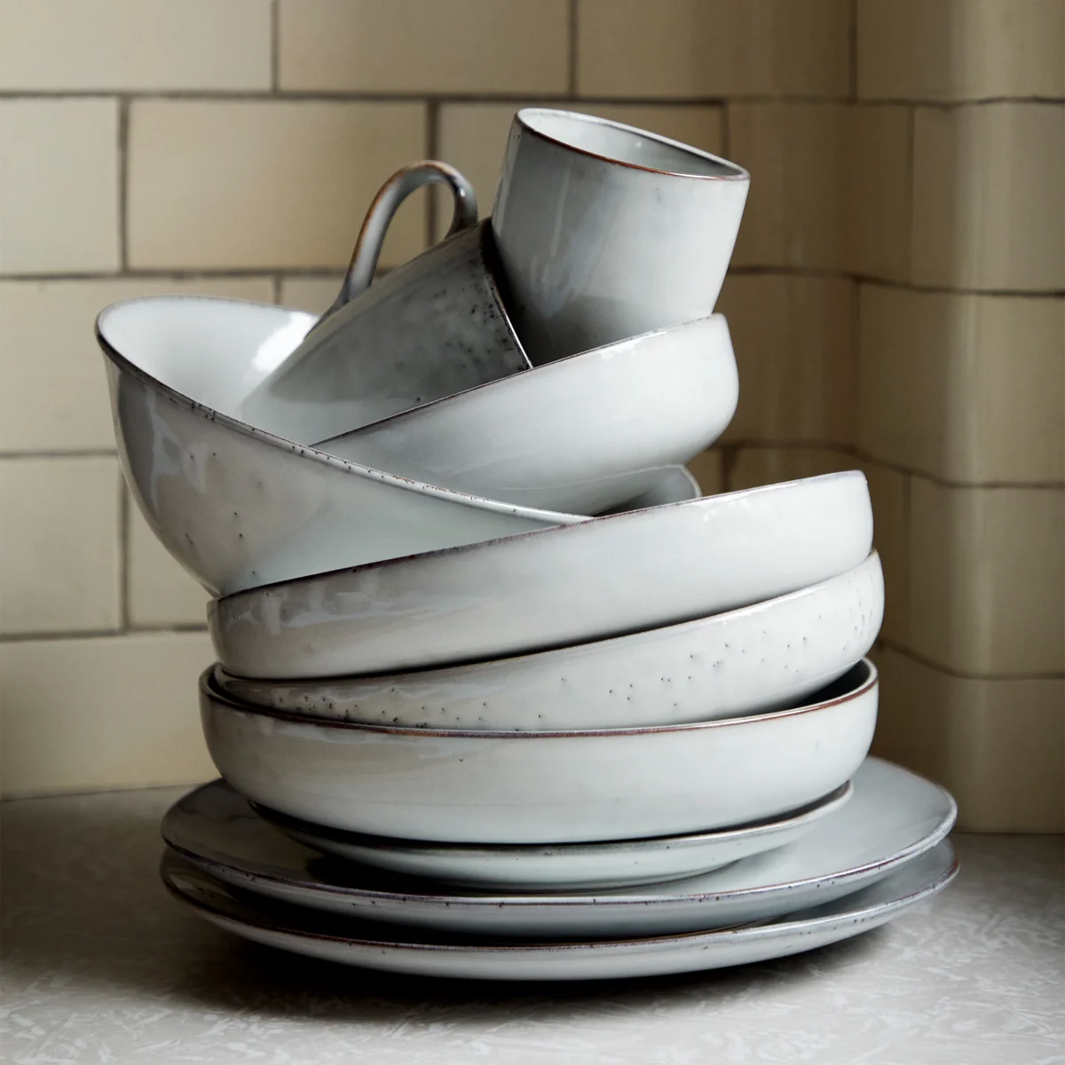 Die unregelmäßige Glasur erinnert an den Sand, der über den Strand fegt und die windgepeitschten Wellen des nordischen Meeres. So schafft man eine skandinavische Note auf dem Esstisch und erzeugt echtes Urlaubsfeeling.