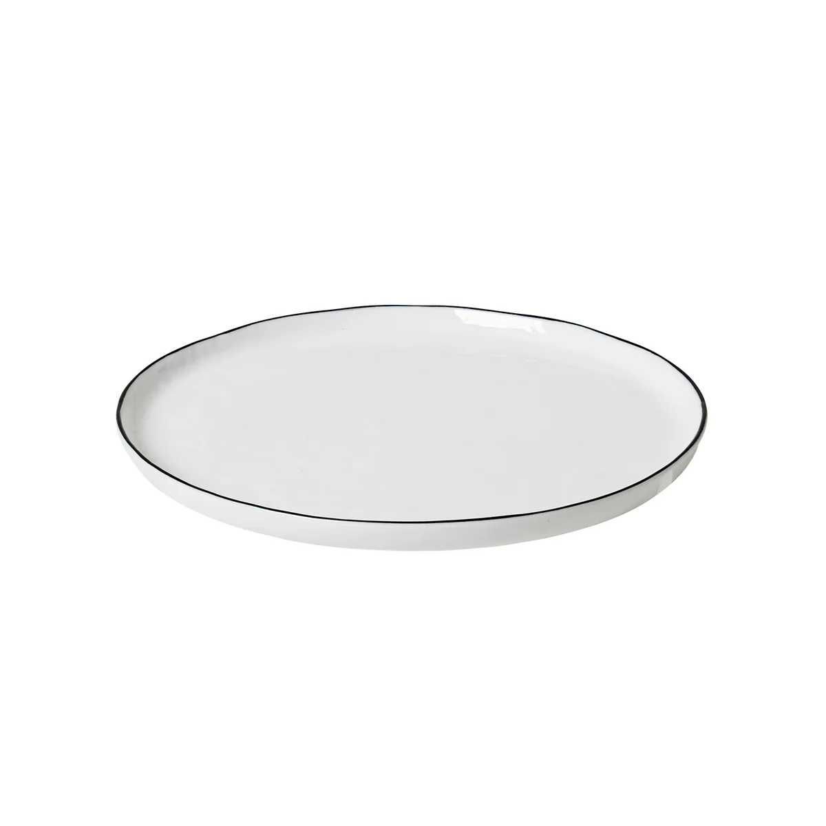 Der Salt Teller von Broste Copenhagen ist Teil der gleichnamigen Kollektion, die sich durch klassische Formen mit Eleganz und Schärfe auszeichnet. Die weiße Glasur wird durch handbemalte schwarze Ränder ergänzt. Die Glasur erhält im Brennprozess ihre unverwechselbare Textur und Farbe, die jedes Geschirrstück einzigartig macht.