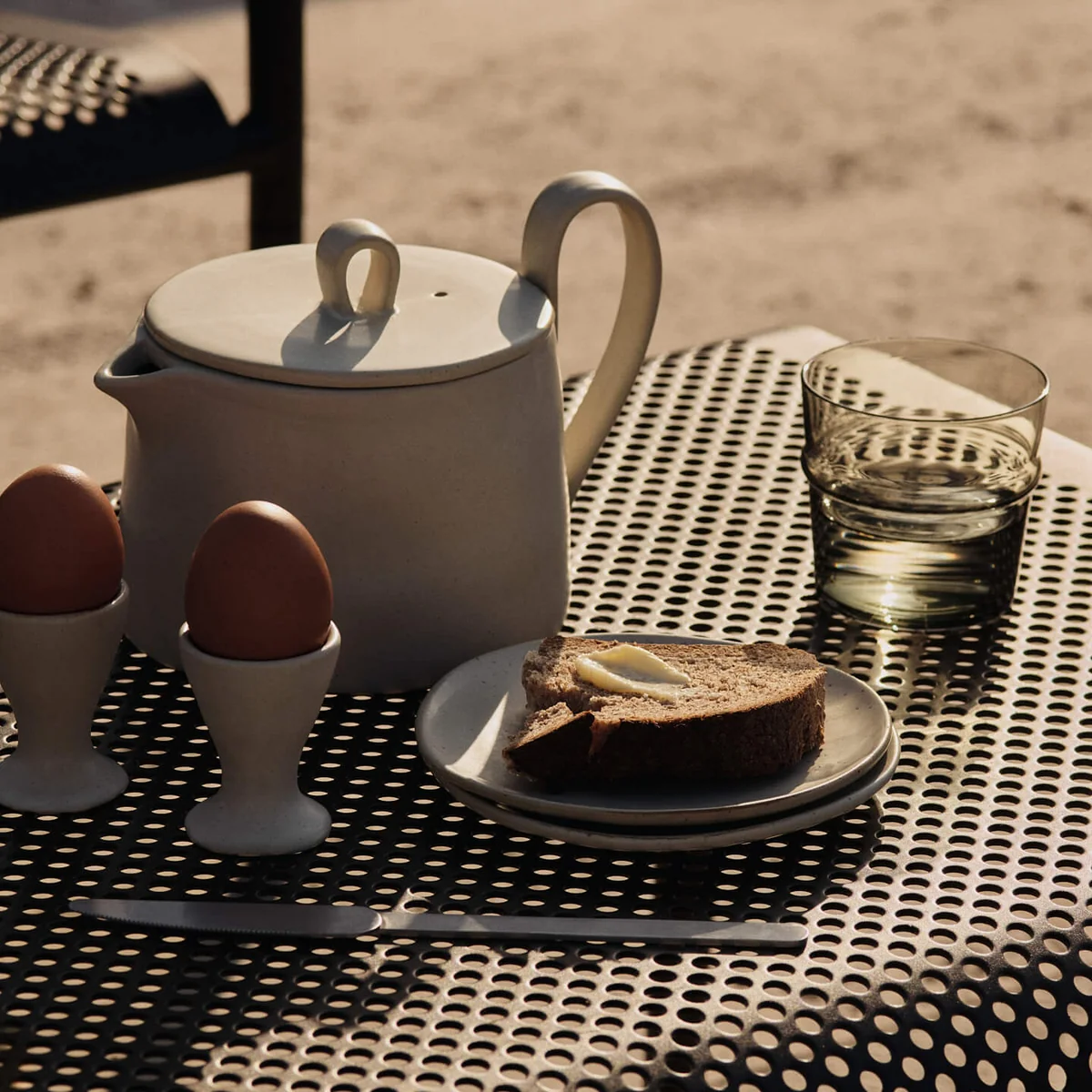 Die Flow Eierbecher von Ferm Living bringen die Philosophie der gleichnamigen Serie auf den Frühstückstisch: unregelmäßig, charaktervoll und modern gedacht. Jedes Stück überzeugt durch eine organische Formensprache und ein fein strukturiertes Finish mit halbmattem Glanz. Die skulpturale Gestaltung verleiht dem funktionalen Objekt eine besondere Präsenz – ein stiller Begleiter für genussvolle Morgenstunden mit handwerklichem Ausdruck.