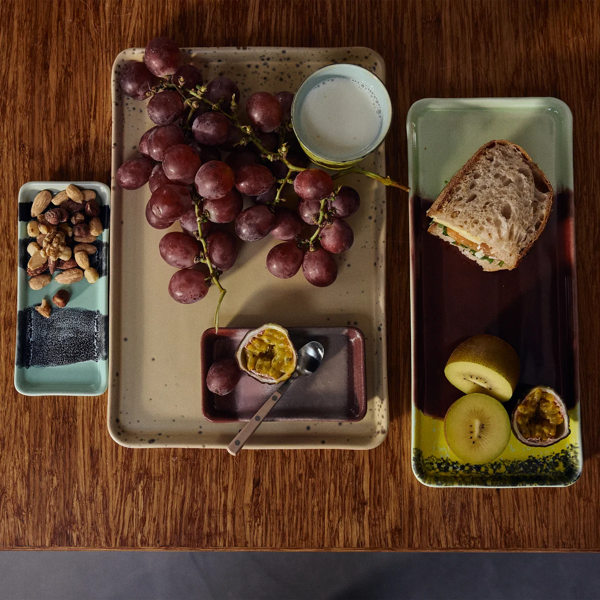 Das 70's Tablett-Set von HKliving aus Keramik ist die ideale Ergänzung zu dem 70's Geschirr und ist in verschiedenen Ausführungen erhältlich. Neue Welten wurden entdeckt, große Fortschritte sowohl auf der Erde als auch zum ersten Mal auf dem Mond gemacht. Dieses neue Set von Trays erweist sich als Ode an diese besondere Zeit. Die Tabletts, sowie die reaktive Glasur und das hochwertige Material präsentieren große Fortschritte sowohl auf der Erde als auch auf dem Mond. Die wunderschönen Designs der reihe sind eine exklusive Hommage an die Zeit, die durch lauter Neuheiten geprägt ist und eine ganz besondere kreative Grundlage bietet.