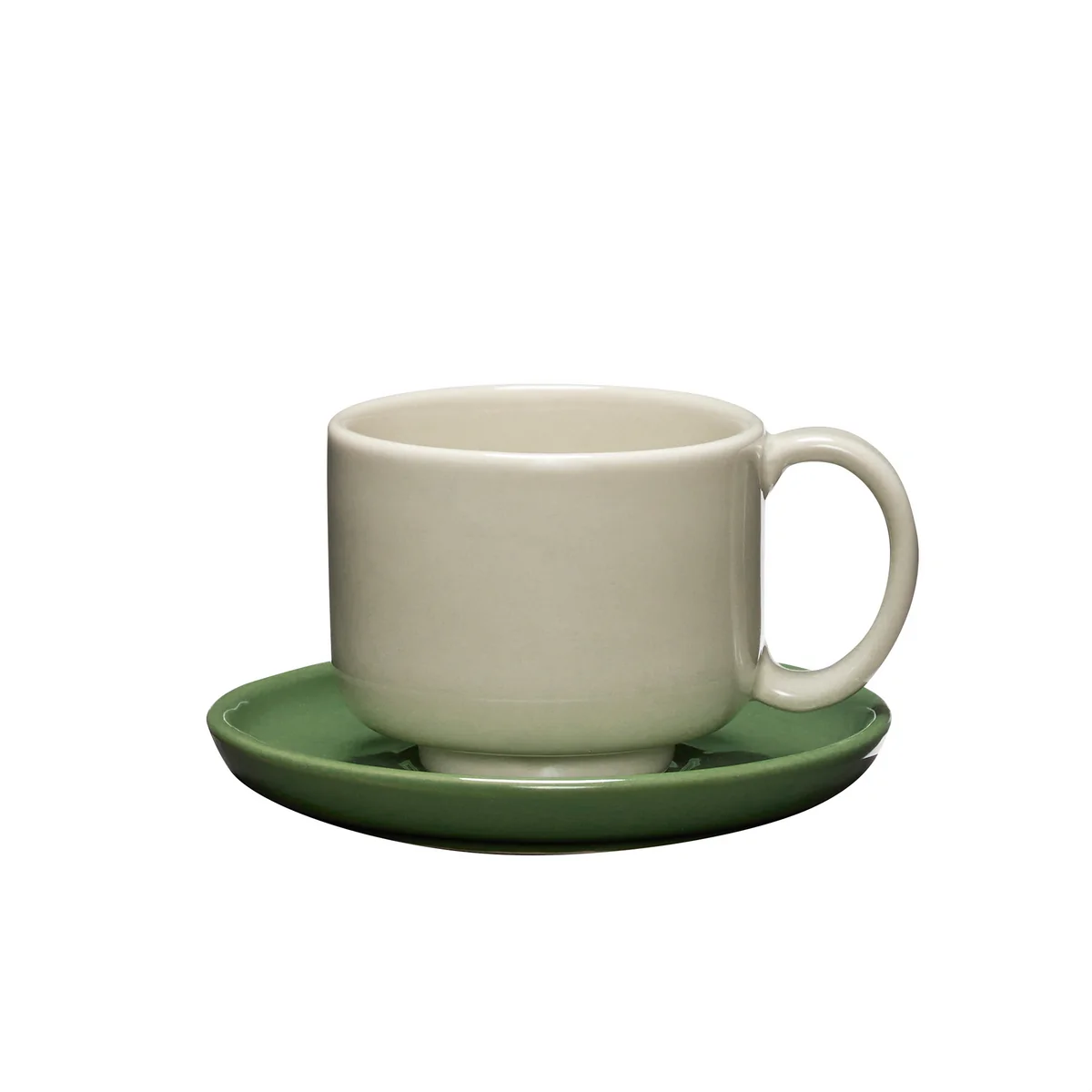 Die Hübsch Interior Amare Tasse mit Untersetzer ist eine elegante und praktische Kombination aus einer Tasse und einem Untersetzer, die sich durch das einzigartige und moderne Design auszeichnet. Typischerweise hat sie klare Linien, eine angenehme Haptik und eine glatte, matte Oberfläche, die sie von gewöhnlichen Tassen abhebt.
