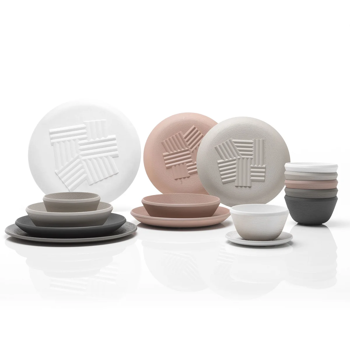 Die Trama Teller sind in verschiedenen Größen und Farbvariationen erhältlich. Sie sind spülmaschinenfest und lebensmittelecht.