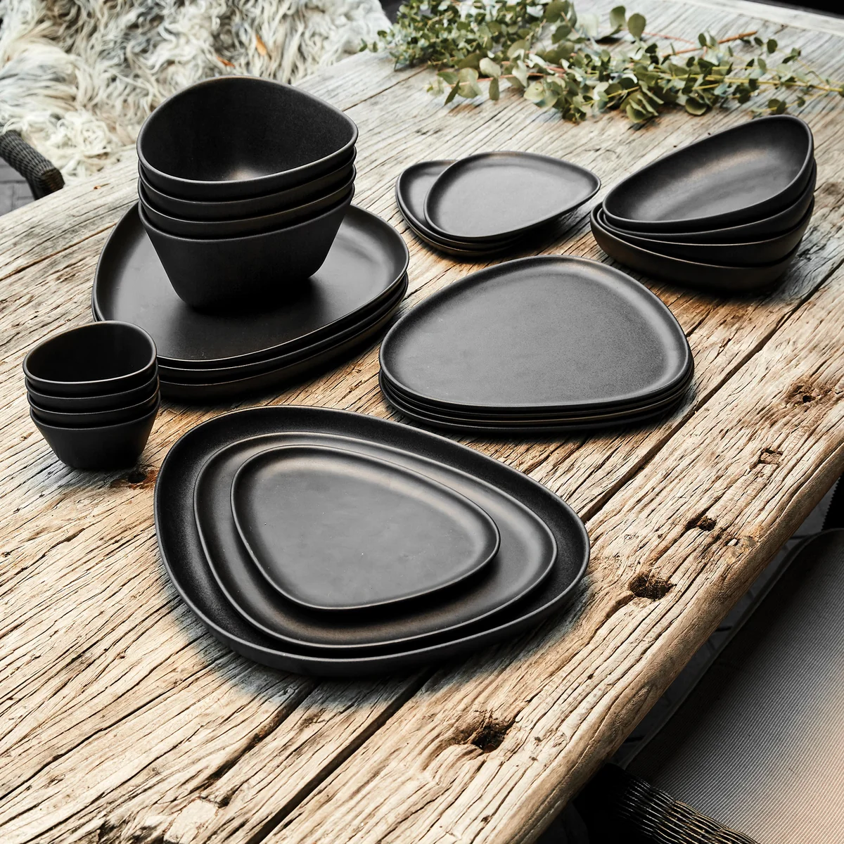 Die Teller sind in verschiedenen Größen erhältlich und somit für jede Art von Speisen geeignet. Der tiefe Teller eignet sich für Suppen, die flachen Teller für Frühstück, Mittag- und Abendessen gleichermaßen und die Platte ist optimal zum Servieren und Anrichten geeignet. Hergestellt werden die Teller aus robustem Steinzeug, wodurch sie einfach in der Spülmaschine gereinigt werden können.