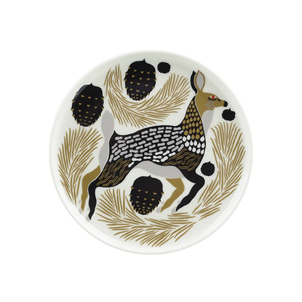 Der Oiva Peura Teller aus dem finnischen Hause begeistert mit seinem einladenden Hirsch-Motiv. Der Teller wird aus spülmaschinen-, ofen-, mikrowellen- und gefriersicherem weißem Steingut hergestellt.