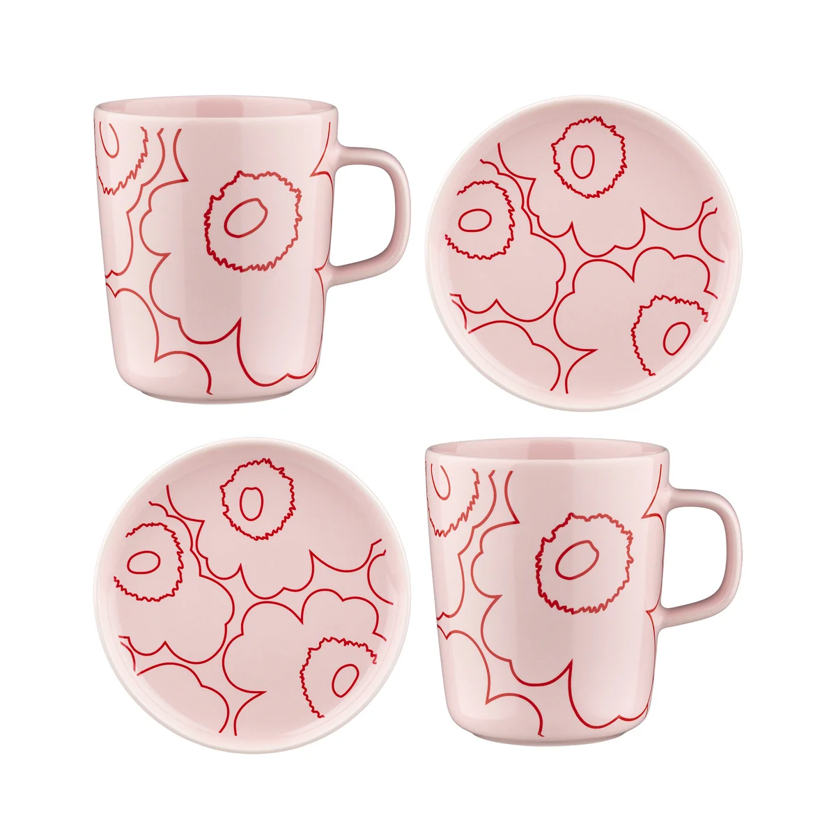 Marimekko - Oiva Piirto Unikko Geschirr-Set, pink / rot (4-tlg)