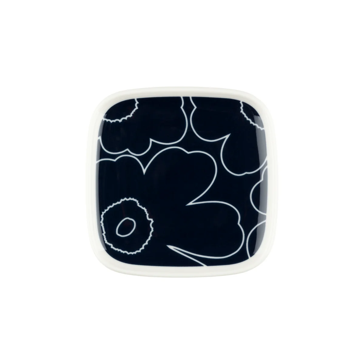 Der Oiva Piirto Unikko Teller von Marimekko ist aus weißem Steingut gefertigt und kann in der Spülmaschine, im Backofen, in der Mikrowelle und im Gefrierschrank verwendet werden.