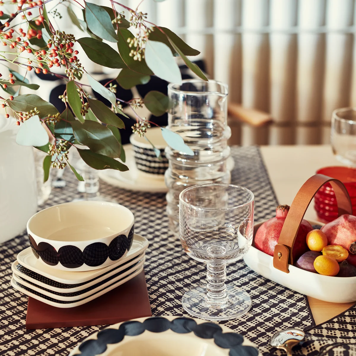 Genauso bunt ist die Entstehung der Marimekko Oiva Räsymatto Schale: Das ikonische Räsymatto Muster stammt von Maija Louekari, während Sami Ruotsalainen die Form der Oiva Servierschale gestaltete. Deshalb macht die Schale mit dem komplizierten Namen auch ohne Inhalt eine gute Figur.