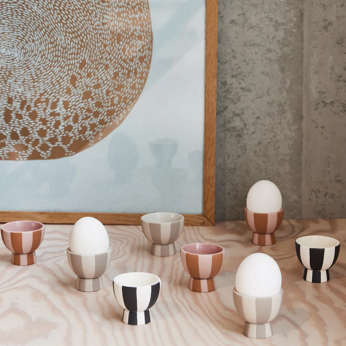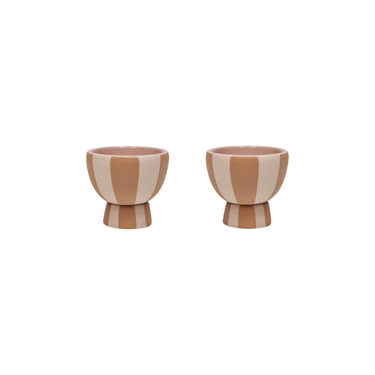 Mit den Toppu Eierbechern von OYOY ist für frischen Wind auf dem Frühstückstisch gesorgt. Dieses Set aus zwei Eierbechern ist aus hochwertigem Steinzeug gefertigt und kombiniert Langlebigkeit mit einem schlichten, minimalistischen Design.