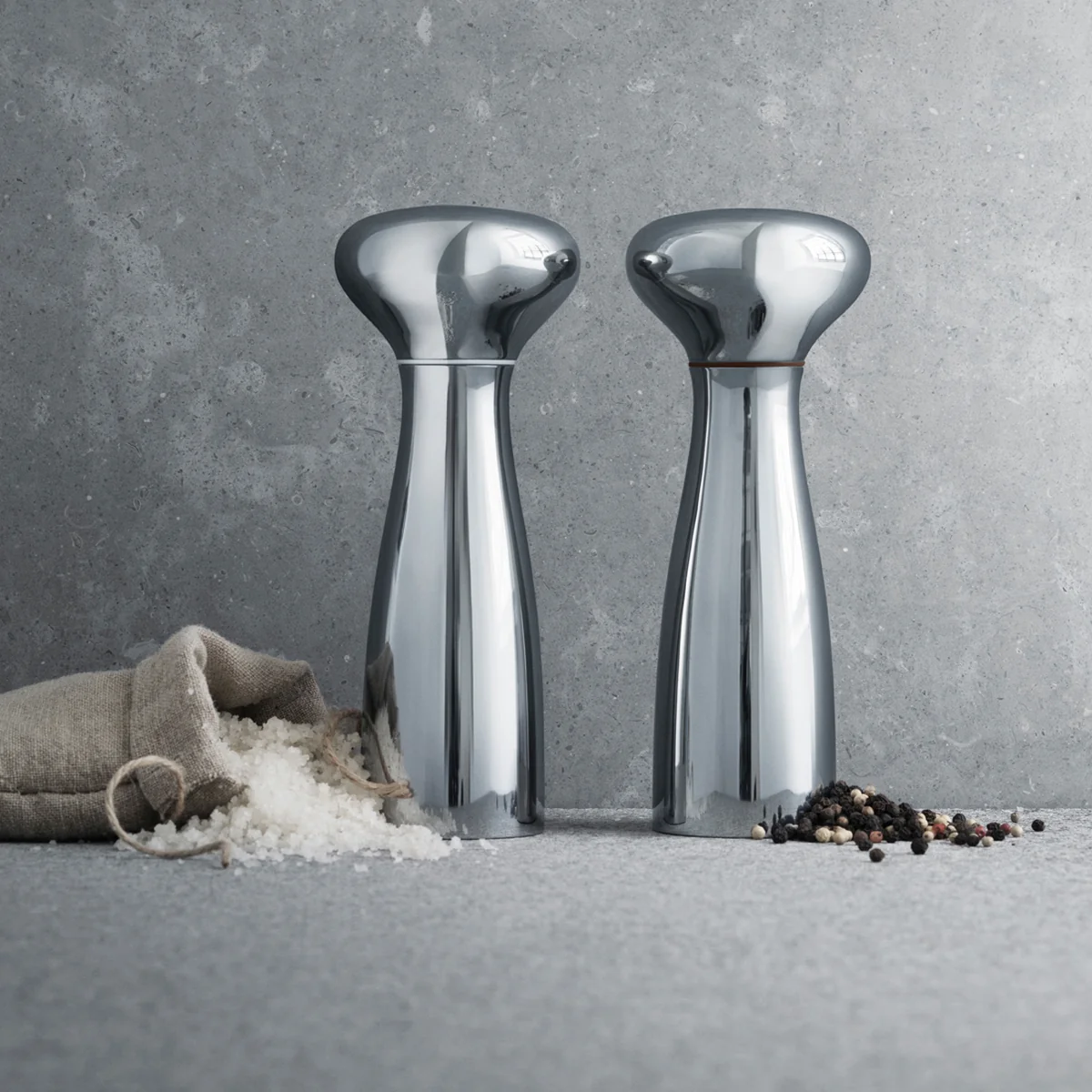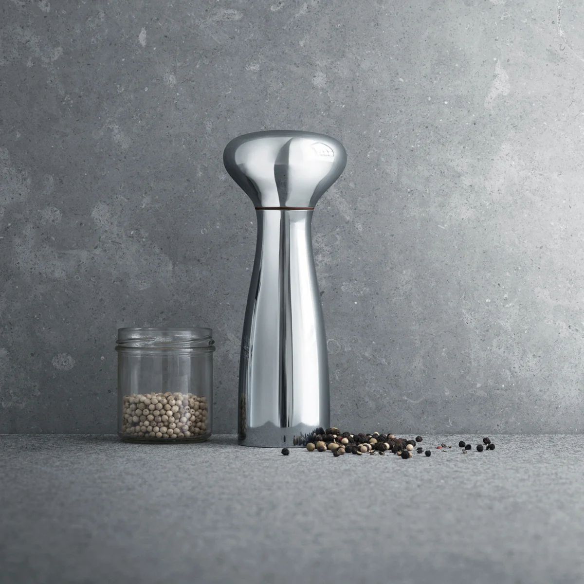 Die Alfredo Salz- und Pfeffermühlen von Georg Jensen zeichnen sich durch ihre dynamische, gleichzeitig aber schlichte Optik aus. Durch das ansprechende Design, vereint mit Funktionalität und Alltagstauglichkeit, sind sie flexibel einsetzbar. Sie sind Teil der Alfredo-Kollektion, die der Designer Alfredo Häberli für Georg Jensen entworfen hat.