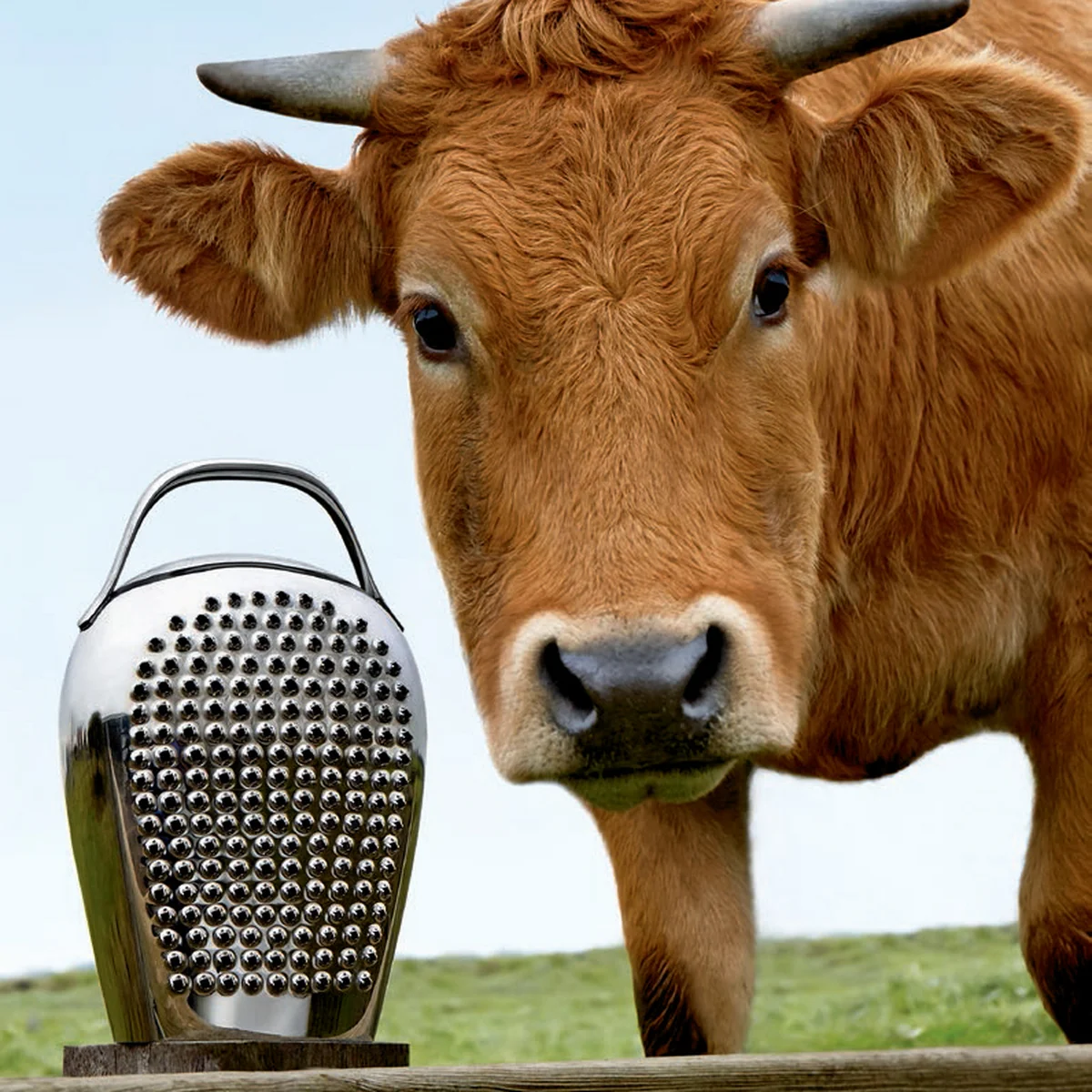 Die von Lorenza Bozzoli und Gabriele Chiave designte Käsereibe „Cheese please“ präseniert sich in der Form einer Kuhglocke und ist damit ebenso charmant wie funktional.