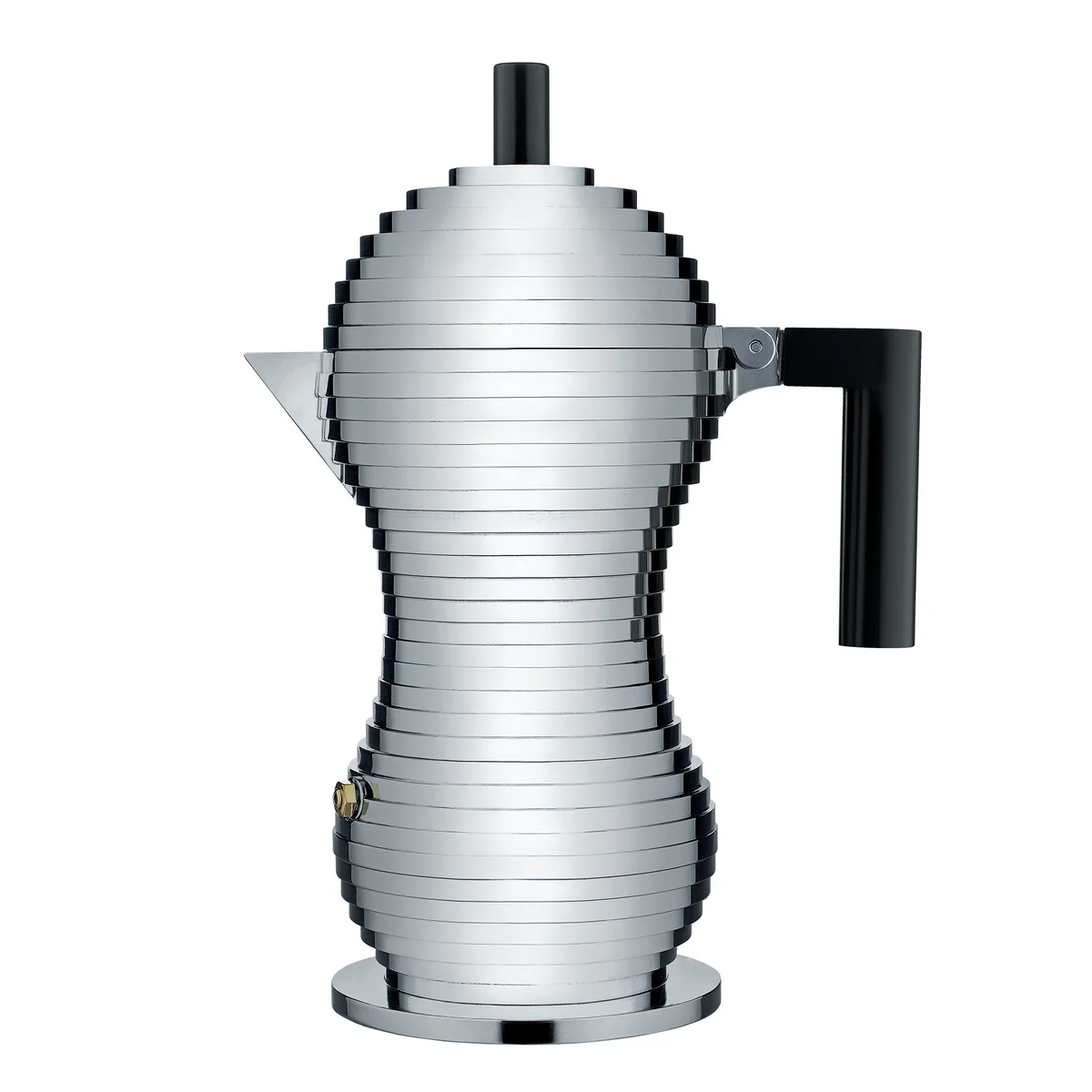 Der Pulcina Espressokocher von Michele De Lucchi für Alessi wird aus Gußaluminium hergestellt und ist in verschiedenen Größen und Farben erhätlich.
