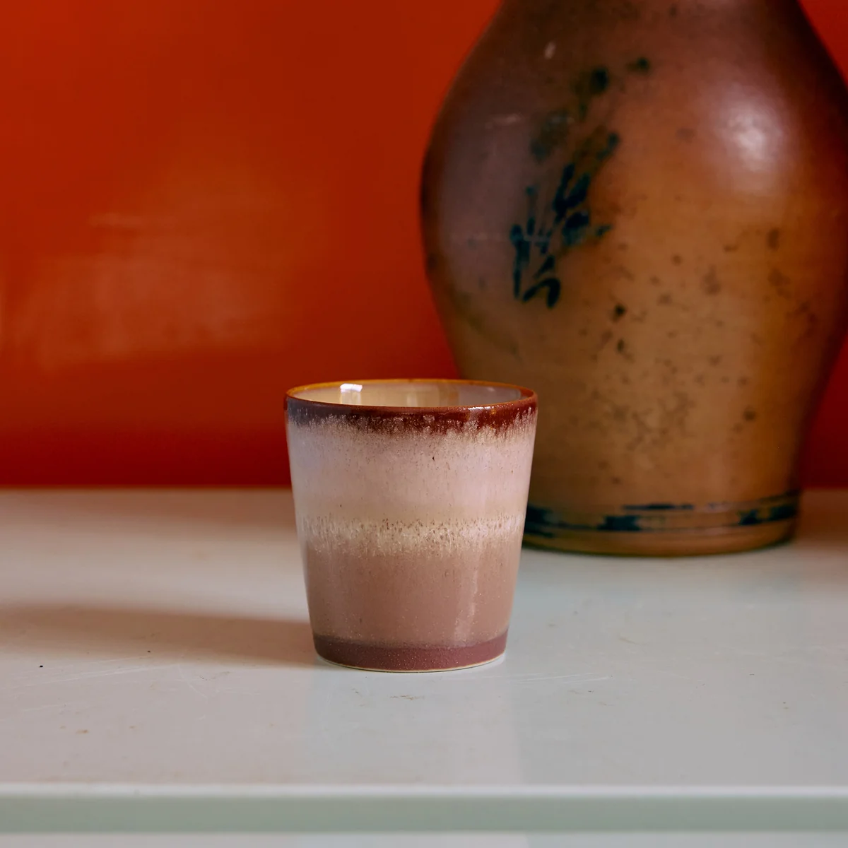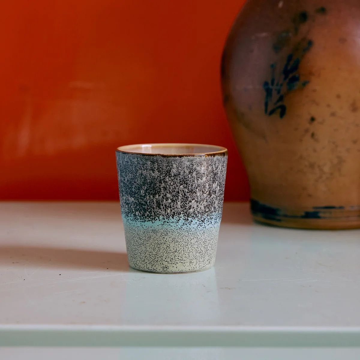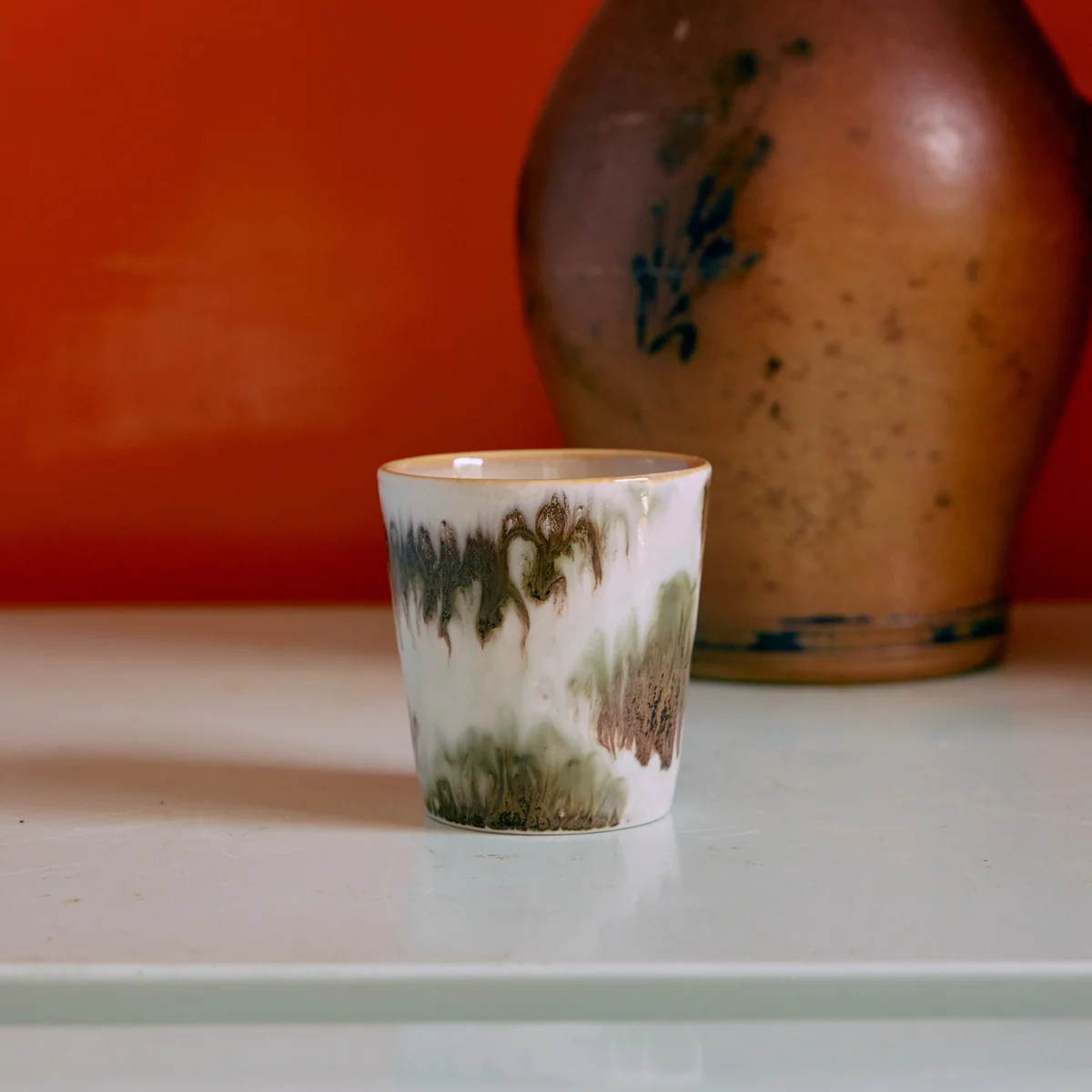 Die 70's Kaffeebecher von HKliving sind für langjährige Sammler wie für Neuentdecker ein Grund zur Freude: Die aus Steinzeug gefertigten Becher sind so einzigartig wie der Fingerabdruck eines Menschen, da sie von Hand gefertigt und glasiert werden. Auf diese Weise entstehen die wunderschönen Muster und Farben, die jeden Esstisch und jeden Geschirrschrank individuell aufwerten.