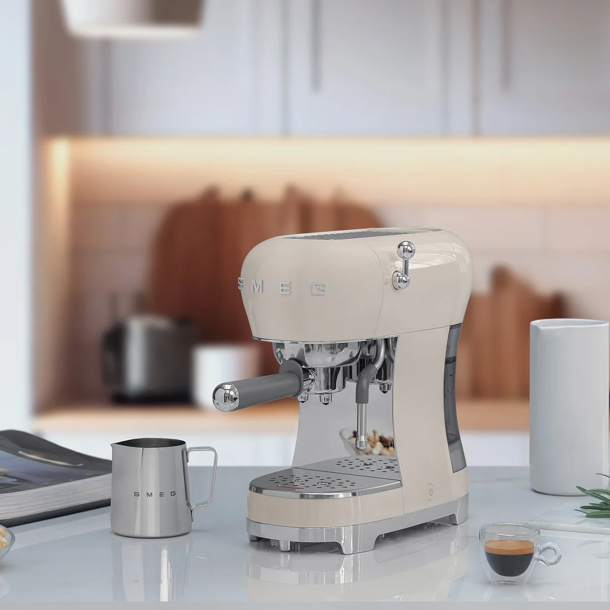 Mit der ECF01 Espresso-Kaffeemaschine von Smeg lässt sich italienisches Flair ganz einfach in die eigenen vier Wände bringen. Kaffee nach traditionell italienischer Zubereitung kann so stilvoll genossen werden. Das Design erinnert aufgrund seiner runden Formen an den Stil der 50er Jahre und sorgt für einen tollen Blickfang auf der Küchenzeile.