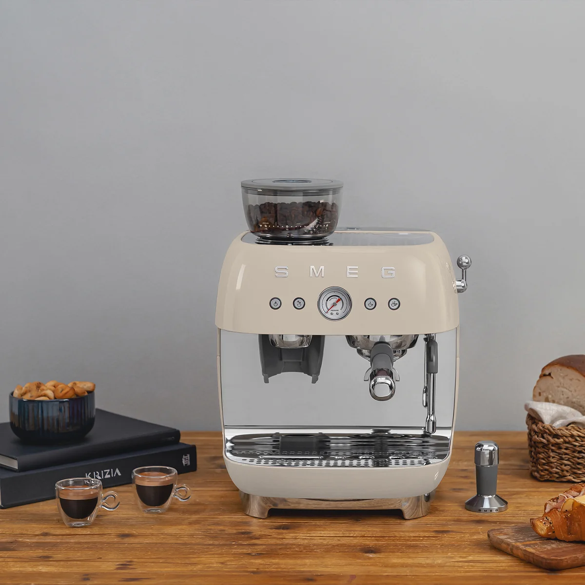 Die Espressomaschine mit Siebträger EGF03 von Studio deepdesign® für den italienischen Hersteller Smeg ist ein unverzichtbares Muss für alle Kaffee-Liebhaber! Die Espressomaschine mit integrierter Kaffeemühle bereitet durch gleichmäßiges Mahlen ein Bouquet aus wunderbaren Aromen zu. Je nach Präferenz kann der Mahlgrad des Edelstahl-Kegelmahlwerks eingestellt werden. Das obere Mahlwerk lässt sich zudem entfernen und kann so ganz bequem gereinigt werden.
