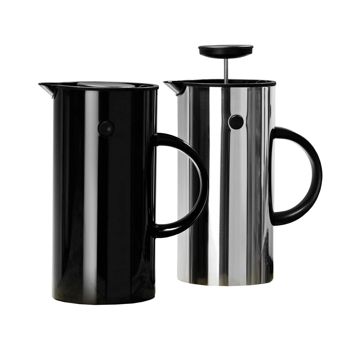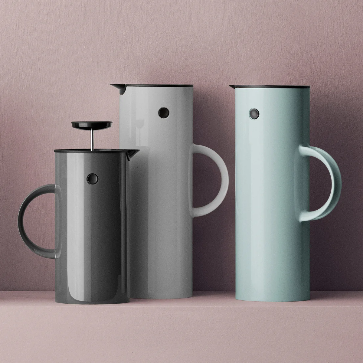 1977 für Stelton entworfen, gibt es die preisgekrönte Erik Magnussen Isolierkanne jetzt als Kaffeezubereiter in verschiedenen Ausführungen. Die EM Pressfilterkanne 1L von Stelton zaubert wunderbaren Kaffee im Handumdrehen.