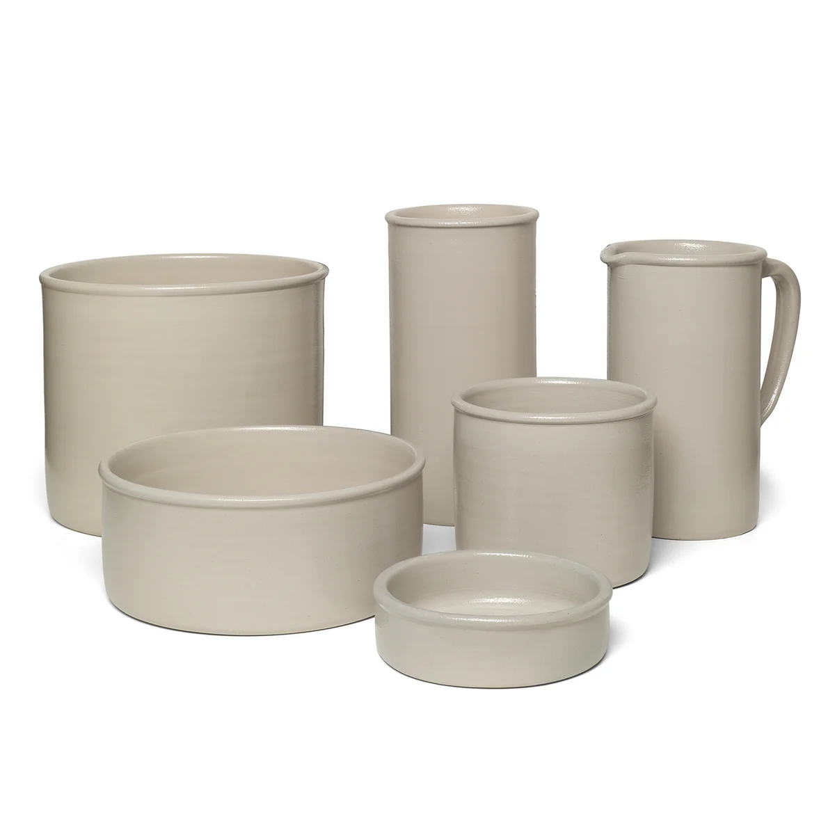Inspirationsquelle der Serie sind die sandgrauen, salzglasierten Steinzeugkrüge, die typisch für die Region Frankfurt sind.