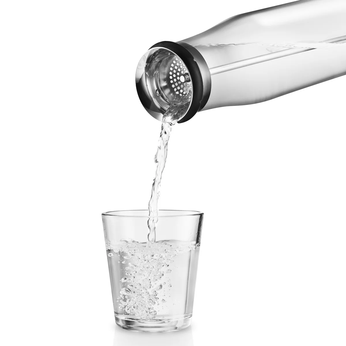Die gewählten Zutaten haben mit dem Spieß einen festen Platz in der Karaffe und schwimmt nicht, wie in anderen Flaschen, lose umher. Selbst kleine Obst- oder Gemüsekerne verbleiben aufgrund eines integrierten Siebs im Deckel in der Eva Solo Flasche zurück. Dabei lassen sich Obststücke und andere Zutaten dank des Spießes nach dem Trinken einfach wieder aus der Flasche entnehmen und bei Bedarf austauschen.