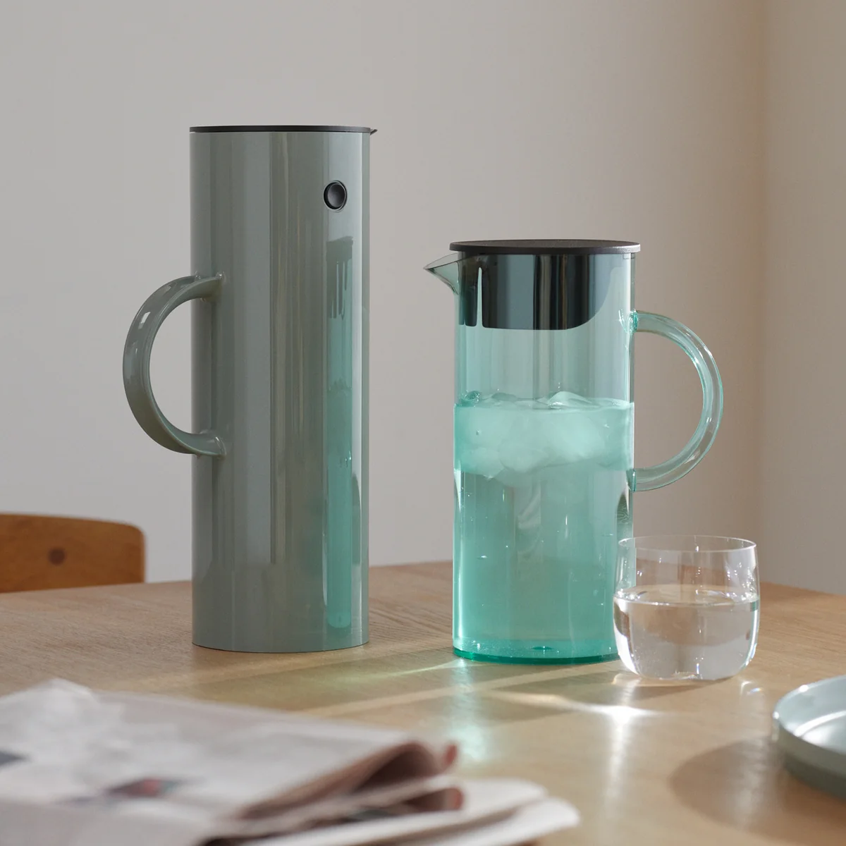 Die EM77 Kanne mit Deckel von Stelton ist der ideale Behälter für alle Flüssigkeiten und ermöglicht ein sauberes, tropffreies und wohl dosiertes Ausgießen. Dank des passgenauen Deckels schließt sie die Flüssigkeit von der Außenwelt ab und erhält so ihre Frische.