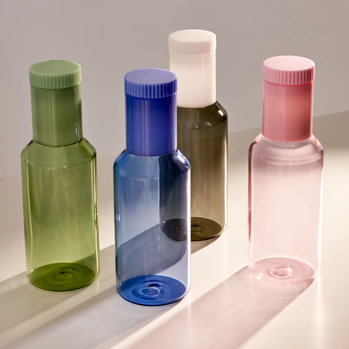 Die Tube Glaskaraffe des Herstellers Design Letters sorgt mit ihrer farbenfrohen Optik für ein äußerst elegantes Tischbild. Der dicht schließende Deckel und das schmale, röhrenförmige Design der Karaffe eignen sich hervorragend für die Aufbewahrung im Kühlschrank. So bleiben Wasser, Säfte, Eistees oder Cold Brew Kaffees schön kühl. Tubes Korpus wird aus Borosilikatglas handgefertigt. Da es sich um einen handgefertigten Artikel handelt kann es zu leichten Produktabweichungen kommen. In verschiedenen Farben mit einem Fassungsvermögen von einem Liter erhältlich.